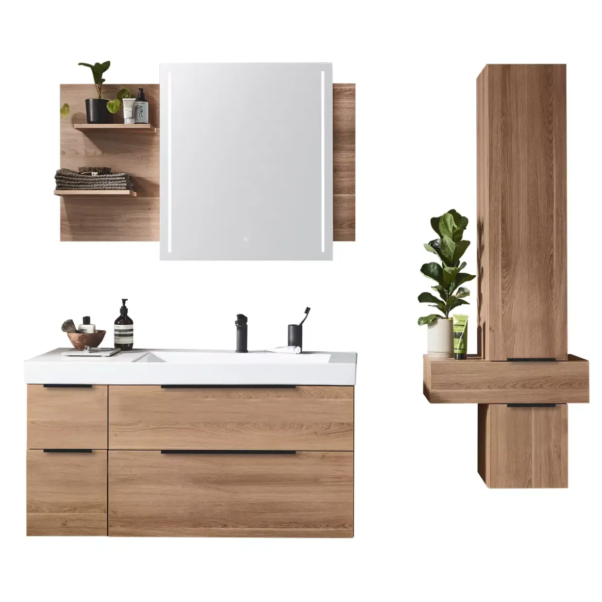 Praktische Ablagefächer auf der linken Seite des Flächenspiegels bieten Platz für Pflegeprodukte und Dekorationselemente. Sie haben somit alles Notwendige stets griffbereit und können den Raum um den Spiegel herum frei gestalten. Der moderne Stil passt sich mühelos verschiedenen Einrichtungsstilen an und fügt sich harmonisch in Ihr Zuhause ein.
