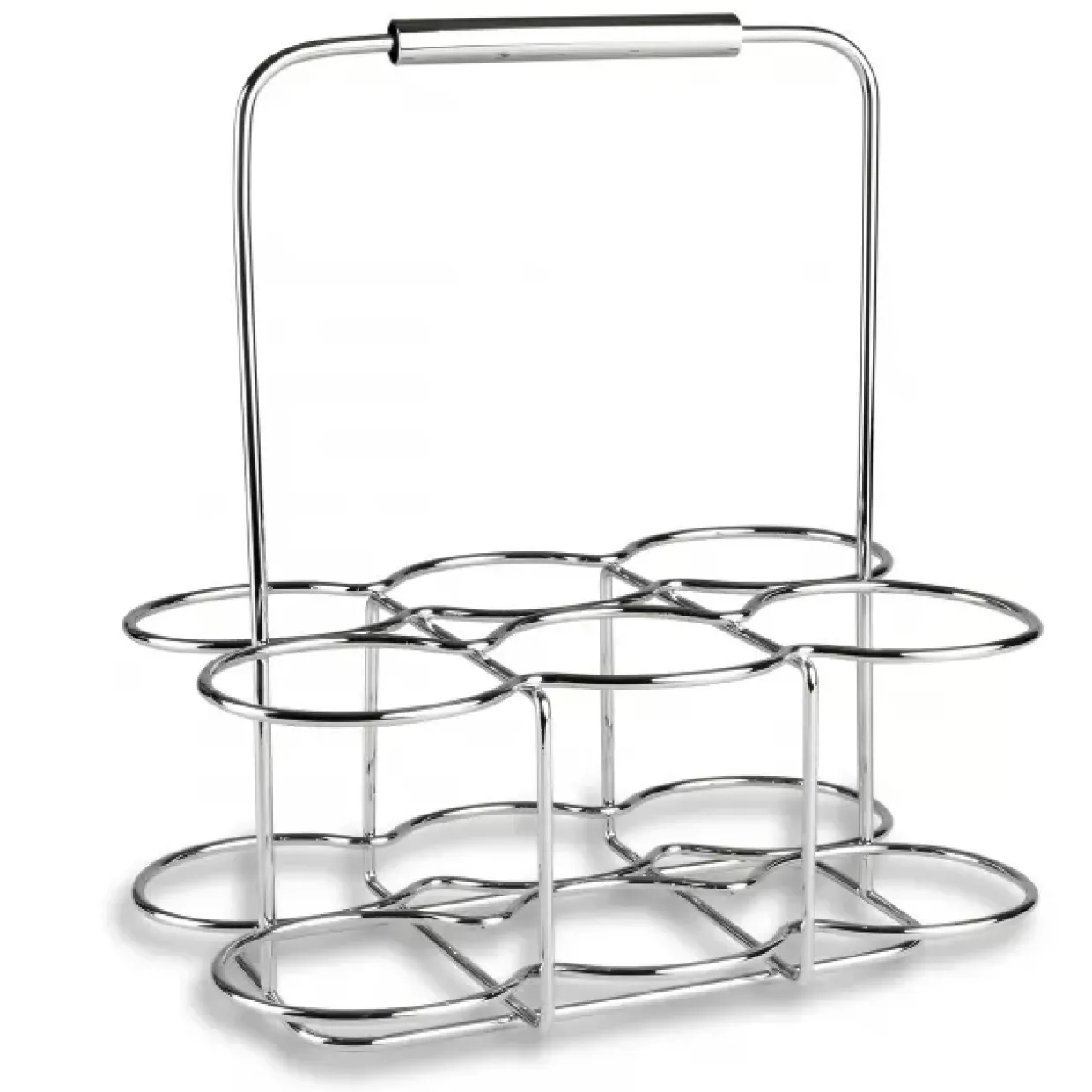 Die elegante silberne Erscheinung des Flaschenkorbs aus der Serie LifeStyle zieht mühelos Blicke auf sich. Gefertigt aus robustem und langlebigem Edelstahl, bietet er eine verchromte Oberfläche, die sowohl modern als auch stilvoll wirkt. Dieser Flaschenträger, der bis zu sechs handelsübliche Glas- und PET-Flaschen transportieren kann, ist nicht nur ein funktionales Accessoire, sondern auch ein ästhetisches Highlight in Ihrem Zuhause.