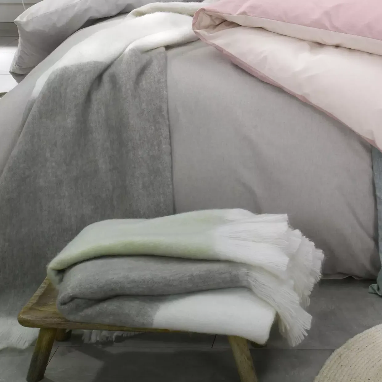Pflegeleicht im Umgang, erfordert die Decke jedoch ein wenig Aufmerksamkeit. Sie sollte weder gebügelt noch gebleicht werden. Auch chemische Reinigungen oder der Trockner sind nicht geeignet, um die Qualität zu erhalten. Eine sanfte Handwäsche oder ein kalter Waschgang in der Maschine sind empfehlenswert, um die Farben und die Form zu bewahren.