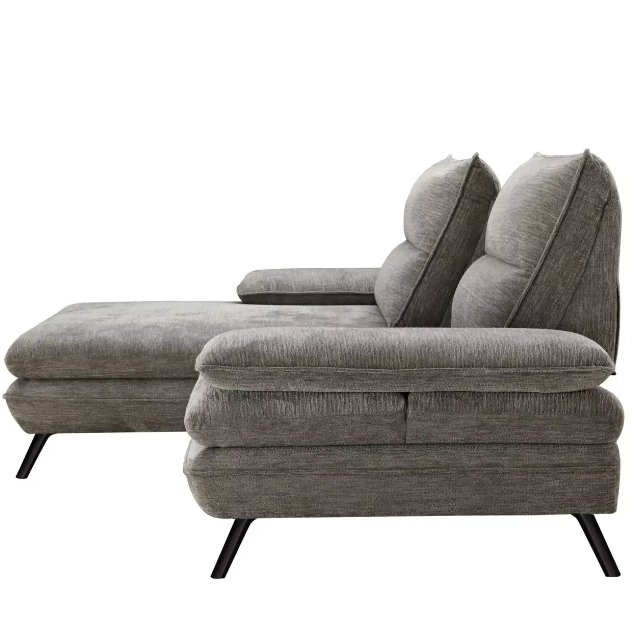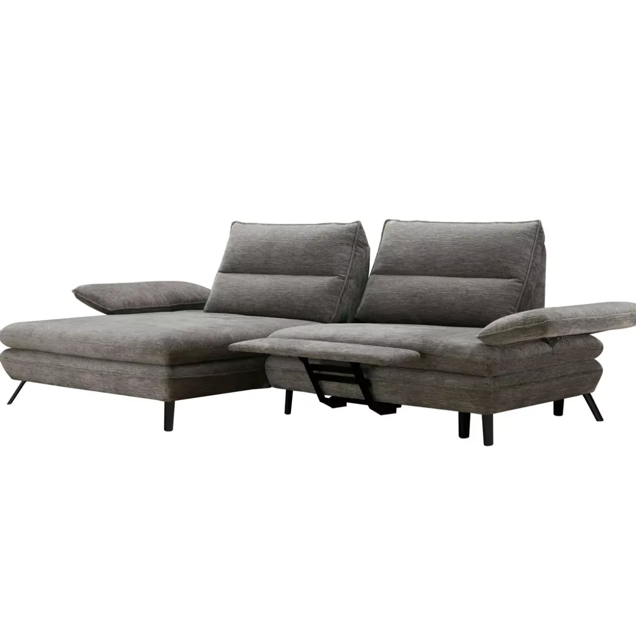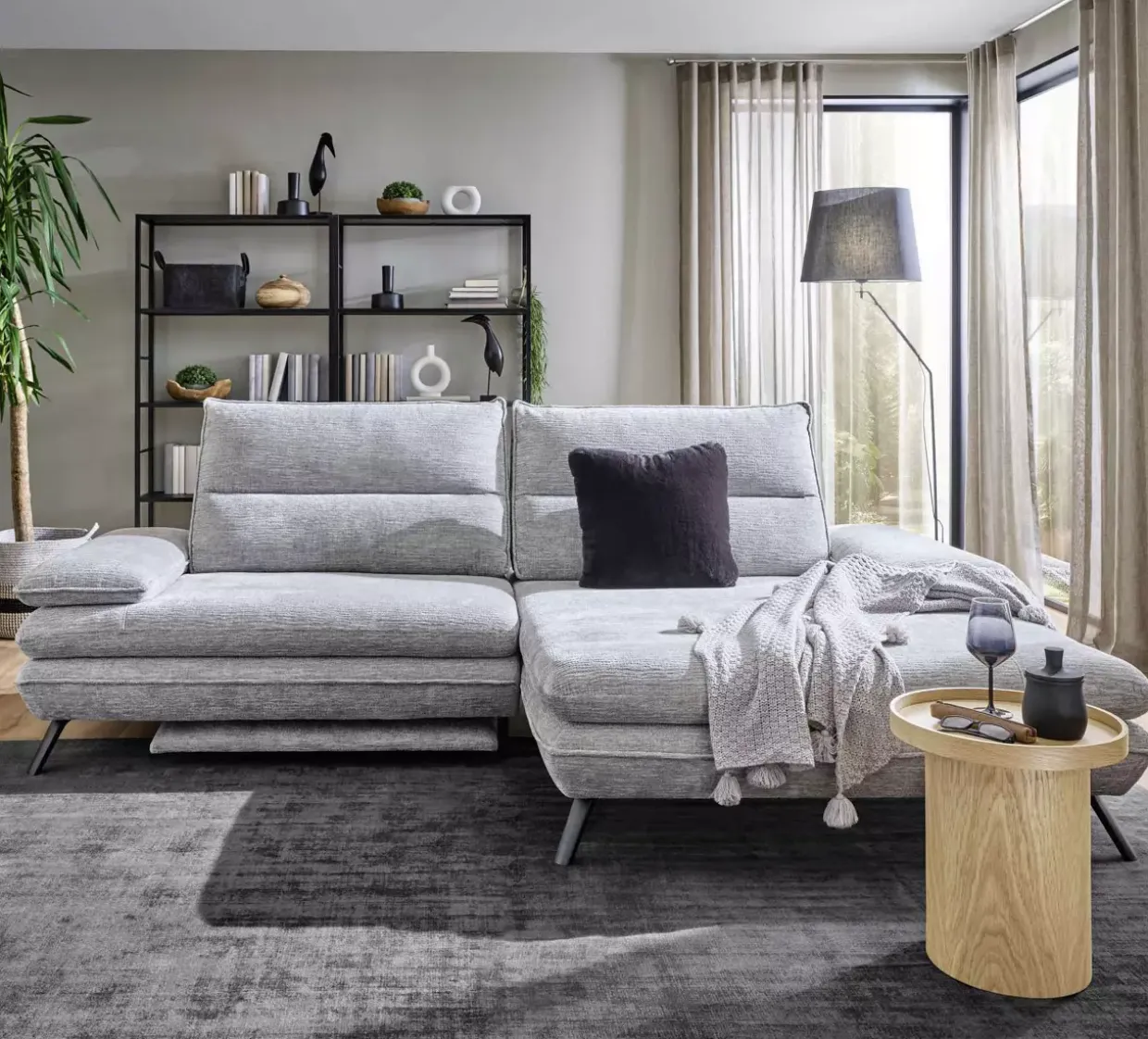 Ein Hauch von Eleganz durchzieht Ihr Wohnzimmer mit diesem Ecksofa in F-A Hellgrau. Das Zusammenspiel von Textil, Holz, Holzwerkstoff und Metall verleiht dem Möbelstück nicht nur eine beeindruckende Optik, sondern auch eine bemerkenswerte Stabilität. Komfort steht im Vordergrund: Die Armteilverstellung sowohl links als auch rechts ermöglicht eine individuelle Anpassung an Ihre Bedürfnisse. Mit der integrierten elektrischen Fußstütze erleben Sie ein unvergleichliches Entspannungserlebnis. Die Relax-Rückenlehne, die manuell über die Push-Back-Funktion bedient werden kann, ergänzt dieses Wohlfühlambiente, indem sie Ihnen die Möglichkeit bietet, den Rückenbereich nach persönlichen Vorlieben zu justieren. Der Echtbezug an der Rückseite des Sofas sorgt nicht nur für eine hochwertige Anmutung, sondern unterstreicht auch die Langlebigkeit des Möbelstücks. Diese Kombination aus Funktionalität und stilvollem Design macht das Ecksofa zu einem idealen Begleiter in Ihrem Zuhause. Ein stilvolles Möbelstück, das sich nahtlos in Ihr Interieur einfügt und gleichzeitig höchsten Komfort bietet – dieses Ecksofa ist die perfekte Wahl für all jene, die sowohl Design als auch Funktionalität schätzen. Gönnen Sie sich den Luxus und die Vielseitigkeit, die dieses Sofa bietet.