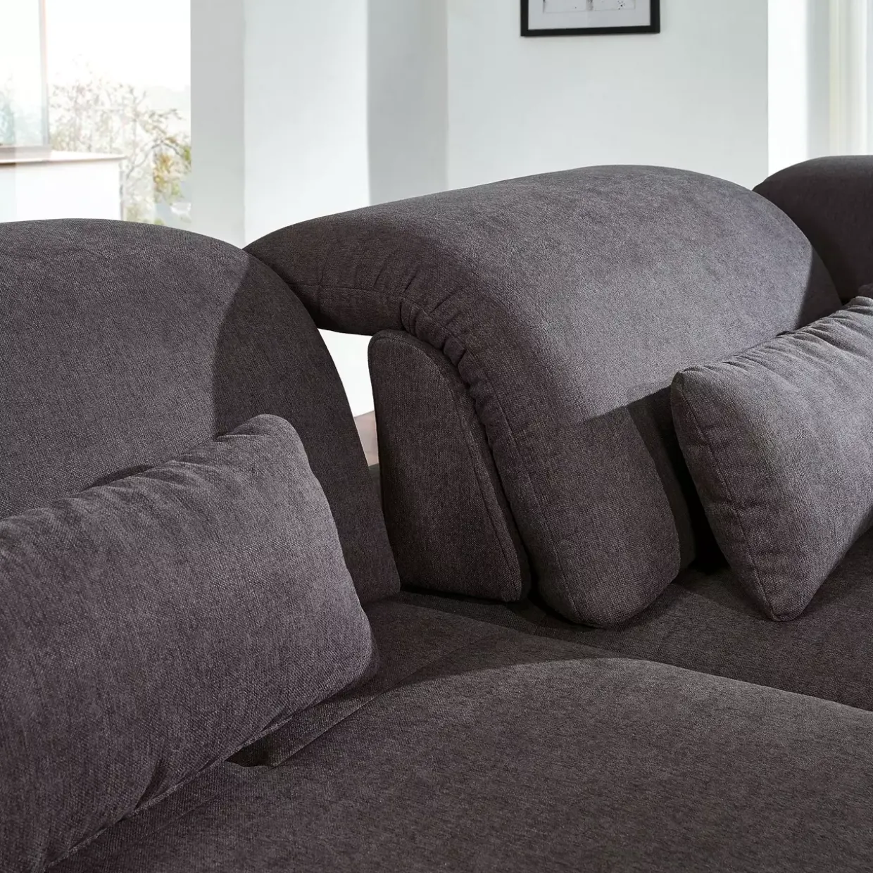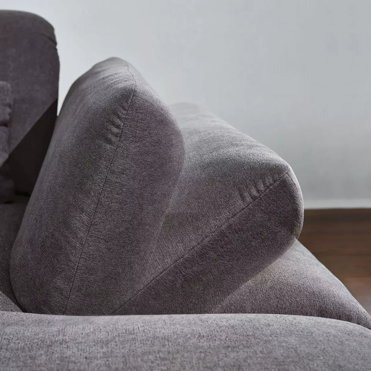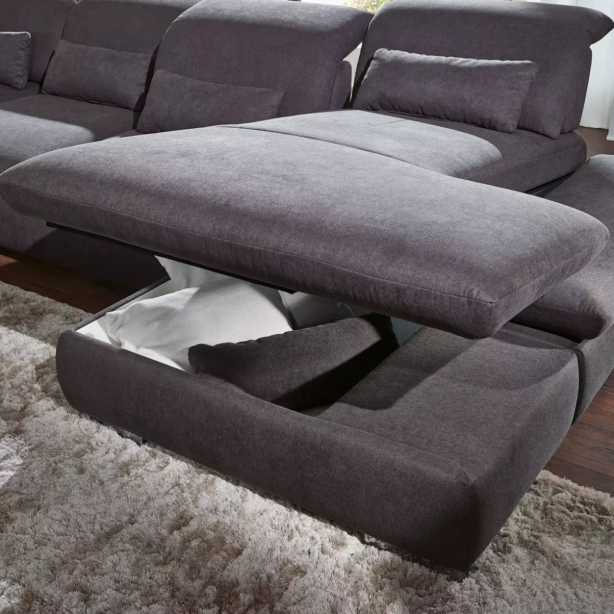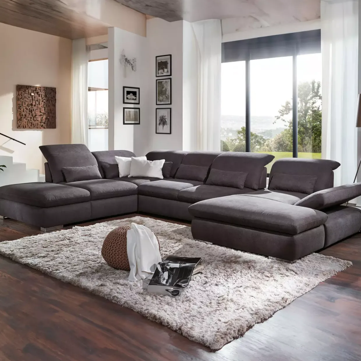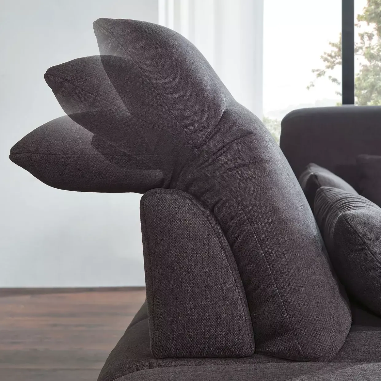 Entspannung pur bietet das Modell Fulla mit seiner durchdachten Relaxfunktion. Der moderne Stil fügt sich nahtlos in jedes Wohnambiente ein, wobei die Kombination aus Stoff, Holz und Metall eine harmonische Balance zwischen Eleganz und Gemütlichkeit schafft. Die Textilart aus Polyester verspricht Langlebigkeit und pflegeleichten Komfort. Besonders hervorzuheben sind die sechs Nierenkissen und die Schwenkrücken, die für optimalen Sitzkomfort sorgen. Vollschaum auf Gummigurtung im Rücken und die Polsterung mit einem Raumgewicht von 35 auf Wellenfedern im Sitzbereich bieten eine stabile und komfortable Unterstützung. Der Rahmenfuß in chromfarbiger Ausführung verleiht dem Möbelstück eine moderne Note, während die Farbe des Stoffes in Schwarz eine zeitlose Eleganz mit sich bringt.Ein weiterer Pluspunkt ist die Freistellbarkeit des Sofas, die Ihnen flexible Gestaltungsmöglichkeiten im Raum ermöglicht. Ohne Dekoartikel und zusätzliche Kissen kommt das Sofa minimalistischer daher, setzt aber dennoch ein stilvolles Statement. Die Armlehnen bieten zusätzlichen Komfort und unterstreichen die Funktionalität des Designs. Ein Möbelstück, das durch seine durchdachte Konstruktion und hochwertige Verarbeitung überzeugt und einen echten Mehrwert für Ihr Zuhause bietet.