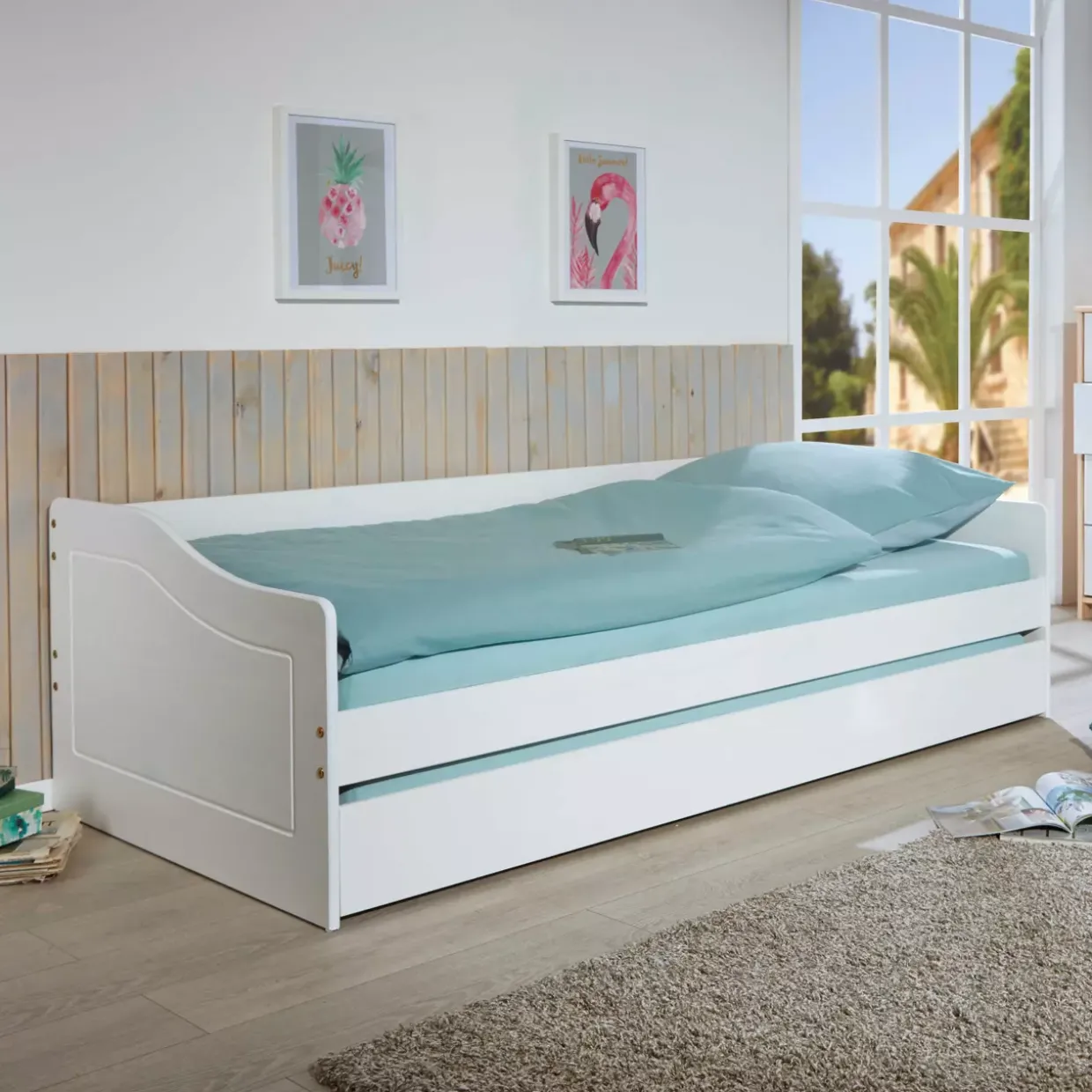 Leonie, das elegante Funktionsbett, vereint moderne Gestaltung mit praktischen Funktionen. In edlem Weiß gehalten, passt es mühelos in jedes zeitgemäße Interieur und wird zum stilvollen Mittelpunkt in Ihrem Schlafzimmer. Das hochwertige Holzmaterial sorgt für Stabilität und Langlebigkeit, während es gleichzeitig eine warme und einladende Atmosphäre schafft.Eine Besonderheit dieses Bettes ist der mitgelieferte Lattenrost. Er ist nicht nur stabil, sondern durch Rollen auch flexibel einsetzbar, was den Komfort zusätzlich erhöht. So können Sie den Lattenrost ganz nach Ihren Bedürfnissen anpassen und genießen eine erholsame Nachtruhe. Das Funktionsbett Leonie bietet zudem durchdachte Lösungen für platzsparendes Wohnen.Seine moderne Optik wird durch klare Linien und ein schlichtes Design unterstrichen, was es zu einer ausgezeichneten Wahl für Liebhaber des modernen Stils macht. Dank der hochwertigen Verarbeitung und der durchdachten Funktionalität ist dieses Bett eine Investition in Komfort und Ästhetik.Ergonomie und Design gehen hier Hand in Hand, um Ihre Schlafumgebung auf ein neues Niveau zu heben. Mit dem Funktionsbett Leonie schaffen Sie nicht nur Platz, sondern auch eine harmonische Schlaflandschaft, die zum Verweilen einlädt. Lassen Sie sich von der Kombination aus Stil und Funktionalität überzeugen.