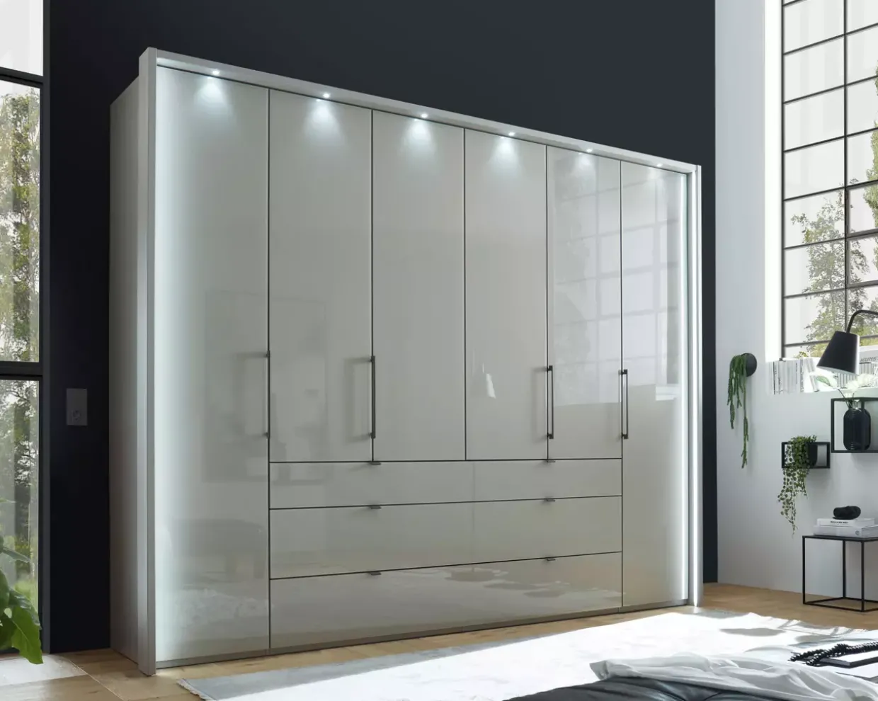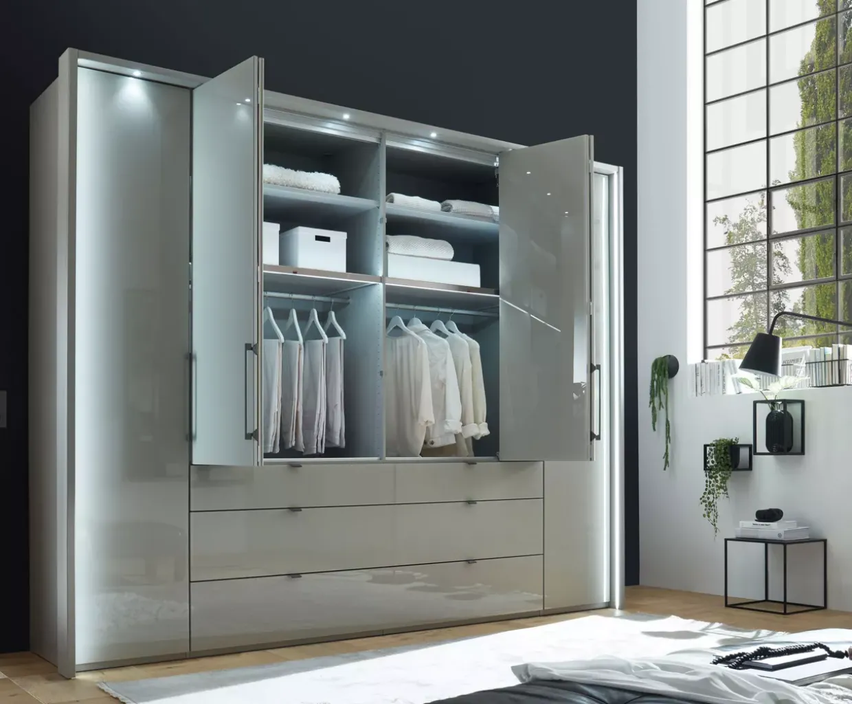 Kieselgraue Glasakzente verleihen dem Schrank nicht nur eine edle Note, sondern schaffen auch eine harmonische Verbindung zwischen den verschiedenen Materialien. Der Funktionsschrank Castello ist die perfekte Wahl für all jene, die Wert auf modernes Design und durchdachte Funktionalität legen. Lassen Sie sich von der zeitgemäßen Ästhetik und der praktischen Ausstattung begeistern.