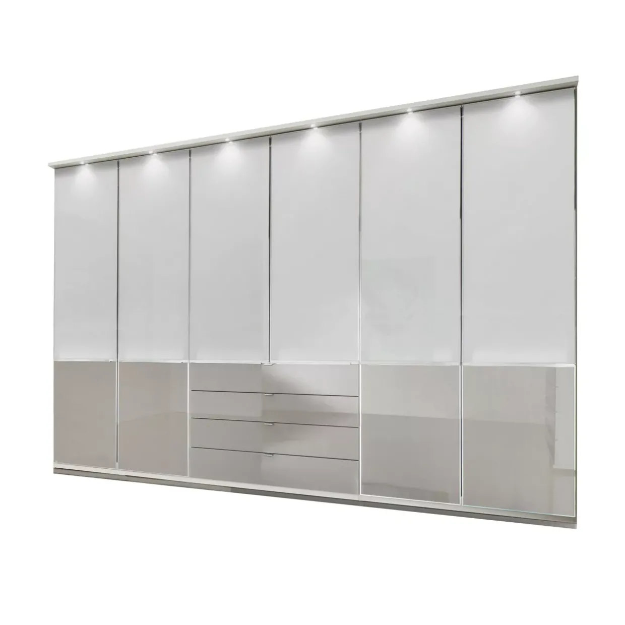 Farbton: Korpus Alpinweiß / Front Glas weiß (oben) / Front Glas kieselgrau (unten) / Griffe Chrom