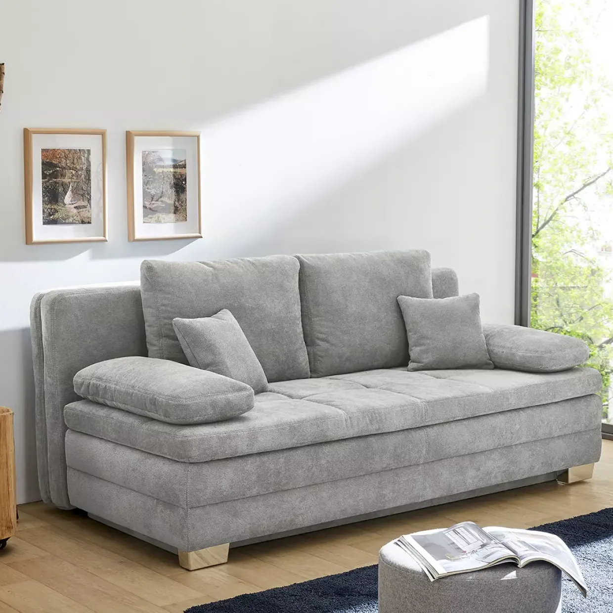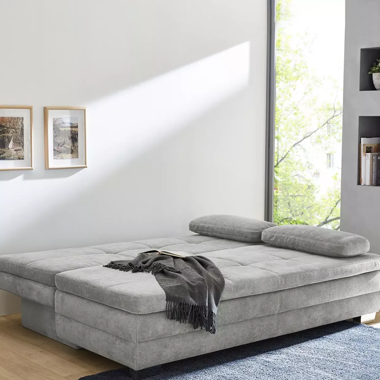 Die Vielseitigkeit dieses Sofas wird durch seine zahlreichen Funktionen unterstrichen. Ein integrierter Bettkasten bietet praktischen Stauraum, während die Schlaffunktion einen schnellen und bequemen Wechsel zwischen Sitzen und Schlafen ermöglicht. Die Freistellbarkeit erlaubt es, das Sofa flexibel in jedem Raum zu platzieren, ohne Kompromisse beim Design einzugehen.