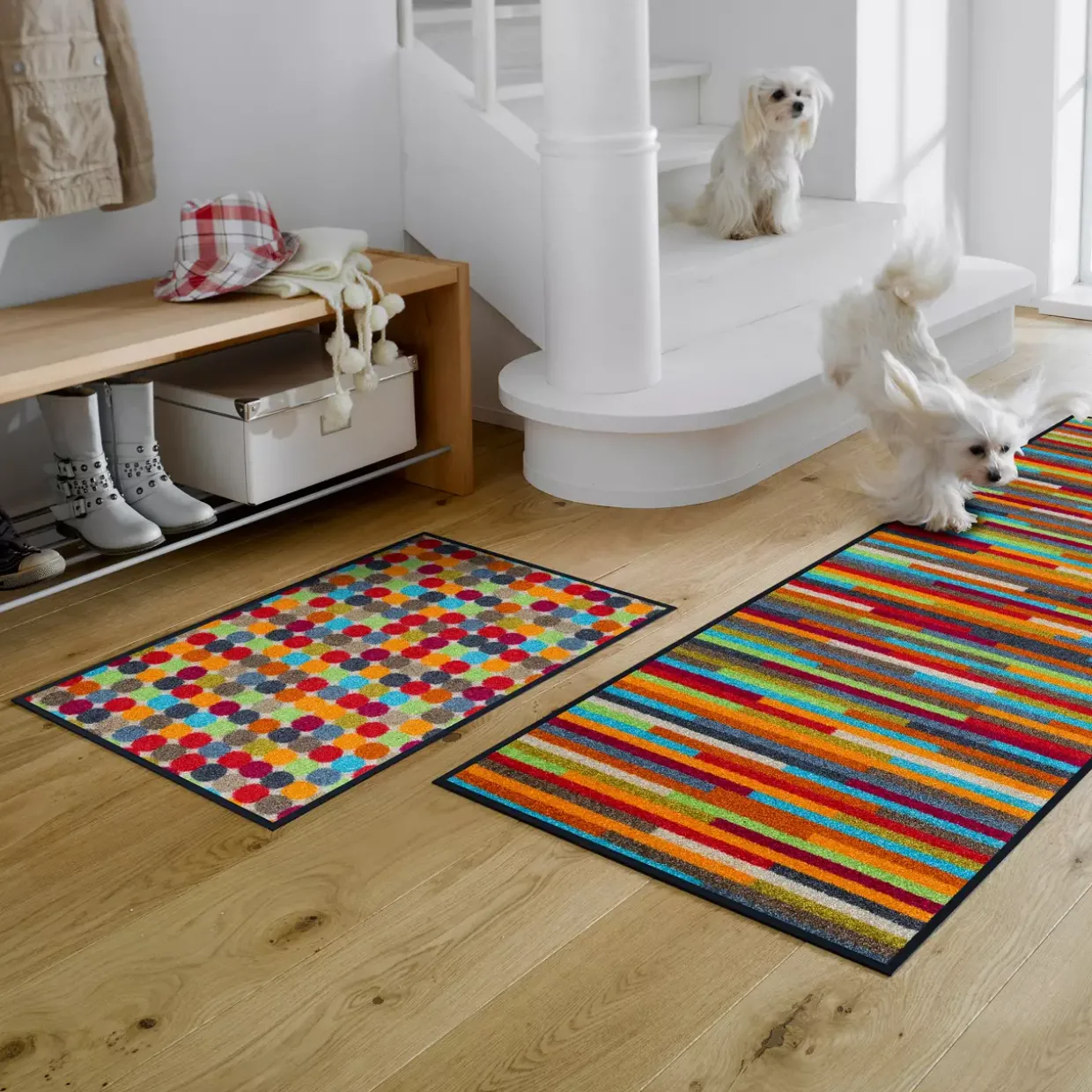 Bringen Sie mit der modernen Fußmatte „Mikado Dots“ Farbe und Stil in Ihr Zuhause. Diese lebendige Fußmatte besticht durch ihr buntes Design und fügt sich nahtlos in jedes moderne Ambiente ein. Die verspielten Punkte in verschiedenen Farbtönen verleihen Ihrem Eingangsbereich eine frische und einladende Atmosphäre. Egal, ob Sie Ihre Gäste beeindrucken oder einfach nur Ihren Alltag mit einem Hauch von Farbe bereichern möchten, diese Fußmatte ist die ideale Wahl für alle, die Wert auf ein stilvolles Zuhause legen.
