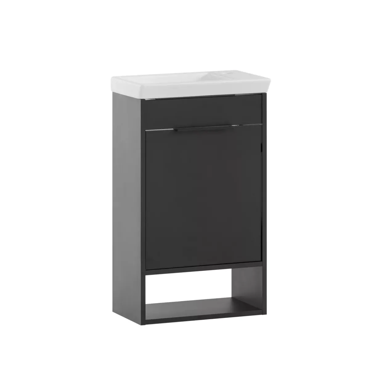 Die Wahl des Türanschlags ist flexibel und kann sowohl rechts als auch links erfolgen, was Ihnen mehr Freiheit bei der Gestaltung Ihres Gästebads bietet. Die Toto Gästebadkombination besticht durch ihre moderne Ästhetik und die elegante schwarz matte Farbgebung. Gefertigt aus einer Kombination von Holzwerkstoff und Metall, vereint sie Robustheit mit stilvoller Optik.