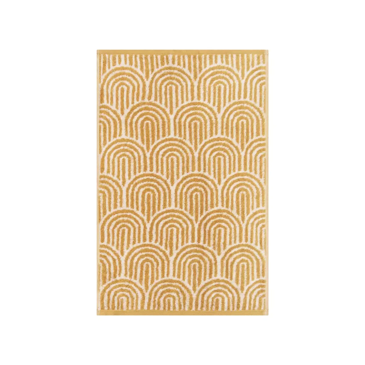 In einem eleganten Goldton präsentiert sich das moderne Gästetuch, das in jedem Badezimmer stilvolle Akzente setzt. Die rechteckige Form sorgt für eine praktische Handhabung, während das hochwertige Frottee-Gewebe aus Naturfasern ein angenehmes Hautgefühl vermittelt. Diese zeitlose Schönheit begleitet Sie durch das ganze Jahr und passt sich jeder Saison nahtlos an.Das Gästetuch ist nicht nur schön, sondern auch funktional. Die ausgezeichnete Verarbeitung ist durch das Ökotex-Standard 100 Zertifikat bestätigt, welches Ihnen die Sicherheit gibt, dass keine schädlichen Substanzen verwendet wurden. Pflegeleicht gestaltet sich der Umgang mit diesem Textil: Es kann problemlos bei bis zu 60°C in der Maschine gewaschen werden und ist trocknergeeignet bei niedriger Temperatur. Bügeln und Bleichen sind nicht erforderlich, was die Pflege zusätzlich erleichtert.Durch seine moderne Ästhetik und die Flexibilität im Einsatz wird das Gästetuch zum unverzichtbaren Begleiter in Ihrem Zuhause. Es vereint Komfort mit Funktionalität und bietet Ihnen ein luxuriöses Erlebnis bei jedem Gebrauch. Lassen Sie sich von der zeitlosen Eleganz und den praktischen Eigenschaften dieses Textils begeistern und genießen Sie das Gefühl von Qualität und Stil in Ihrem Alltag.