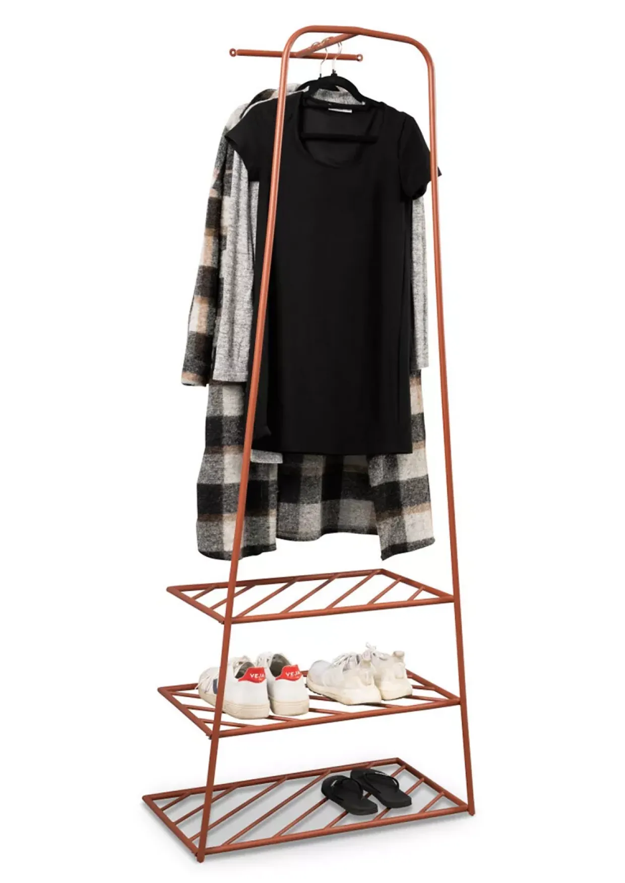 Ein stilvoller und funktionaler Begleiter für Ihren Eingangsbereich, der durch seine rostfarbene Optik und metallische Struktur besticht. Lassen Sie sich von der Verbindung aus Retro-Charme und moderner Langlebigkeit inspirieren.
