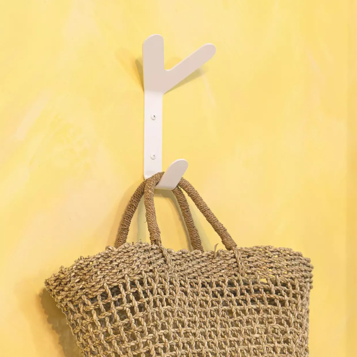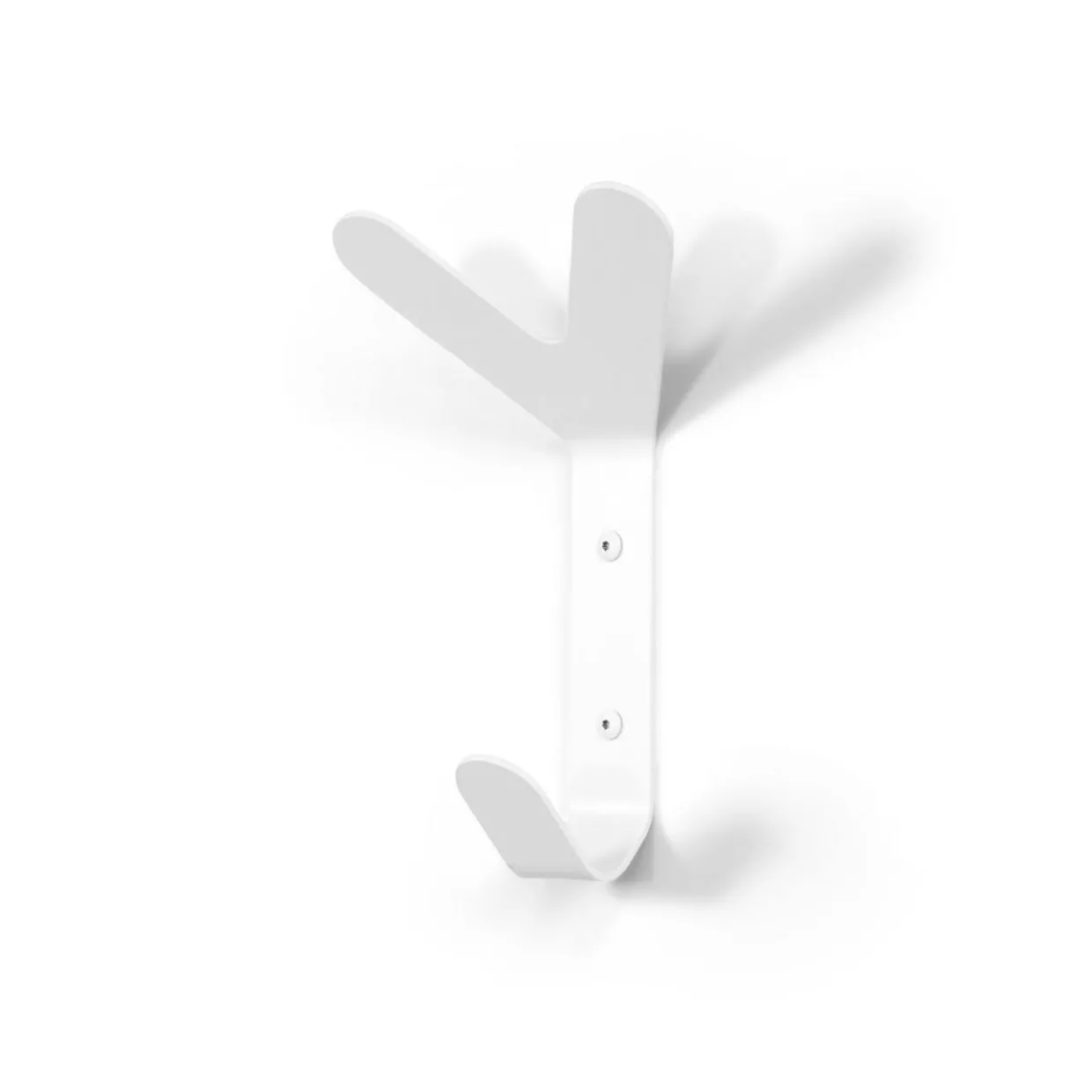 Ein einzelner Arm trägt zwei Haken, die sich ideal für kleinere Flure oder Schlafzimmer eignen. Praktisch und dekorativ zugleich, bietet diese Hakengarderobe vielseitige Möglichkeiten, um Jacken, Taschen oder Accessoires stilvoll zu organisieren. Die clevere Konstruktion und das hochwertige Material versprechen Langlebigkeit und Stabilität.