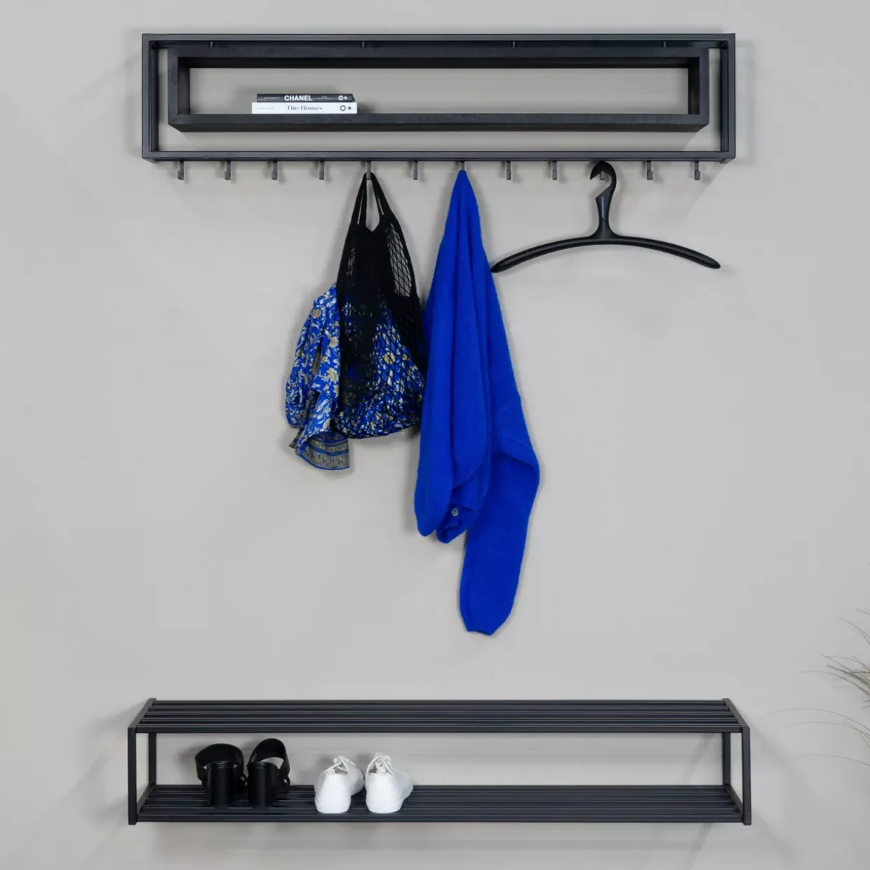 Metall, genauer gesagt Stahl, sorgt für die notwendige Festigkeit und verleiht der Konstruktion eine markante Optik. Das Design ist nicht nur ansprechend, sondern auch durchdacht, um den Anforderungen des Alltags gerecht zu werden. Dank der modernen Gestaltung fügt sich die Garderobe harmonisch in verschiedene Wohnkonzepte ein.