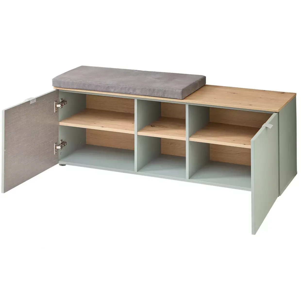 Ein besonderes Highlight ist das inkludierte Sitzkissen, das für zusätzlichen Komfort sorgt und das stilvolle Erscheinungsbild der Bank unterstreicht. Die beiden Türen der Solobank sind mit einem Soft-Close-System ausgestattet, das ein leises und sanftes Schließen ermöglicht und so für eine lange Lebensdauer sorgt.