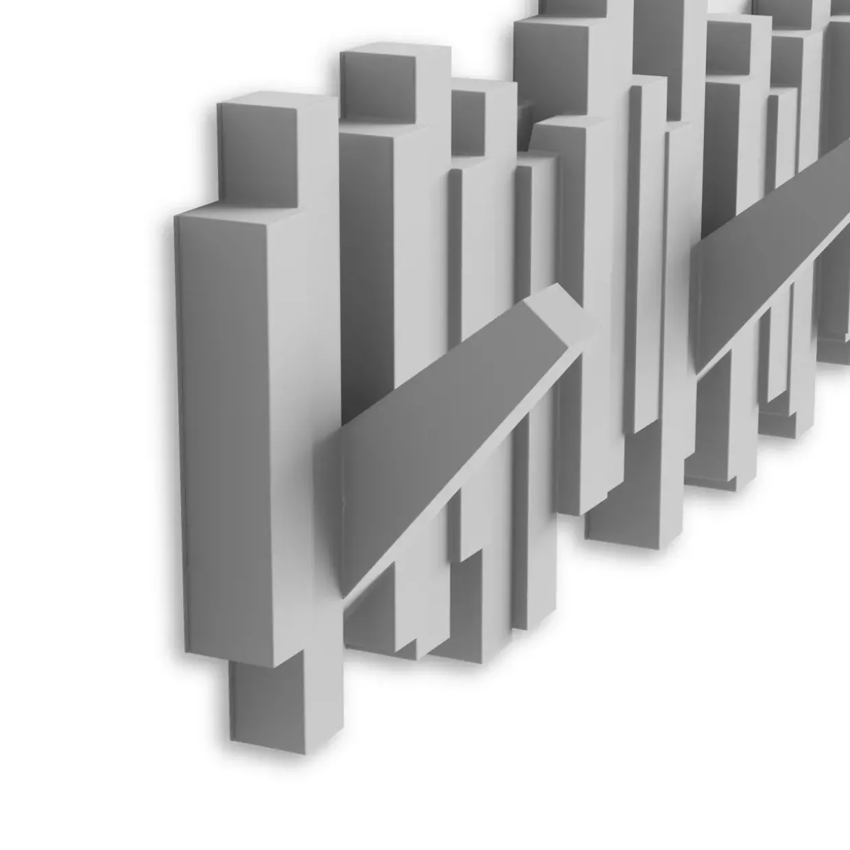 Die moderne Garderobenleiste vereint zeitgemäßes Design mit Funktionalität. In elegantem Grau gehalten, fügt sie sich nahtlos in jede Umgebung ein und verleiht Ihrem Raum eine stilvolle Atmosphäre. Das Material aus robustem Kunststoff garantiert Langlebigkeit und Stabilität, sodass Sie sich auf eine beständige Lösung für Ihre Garderobe verlassen können.