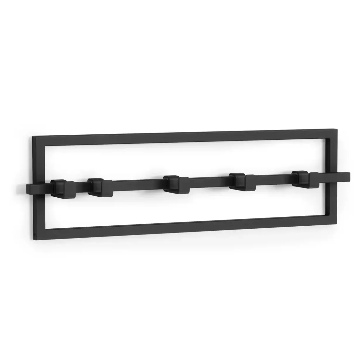 Ein moderner Stil prägt die Cubiko Garderobenleiste, die durch ihr elegantes und zeitloses Design besticht. Schwarz ist die Farbe der Wahl, die dieser Garderobenleiste eine raffinierte und vielseitige Ästhetik verleiht, die sich nahtlos in verschiedene Einrichtungsstile integrieren lässt. Gefertigt aus robustem Metall, bietet sie nicht nur Stabilität und Langlebigkeit, sondern auch eine klare und minimalistische Optik.