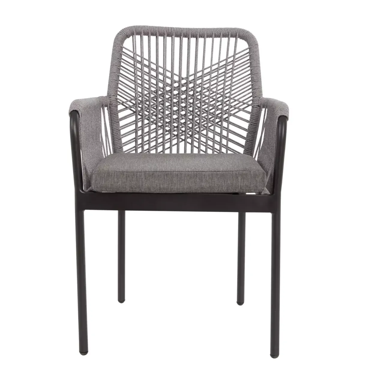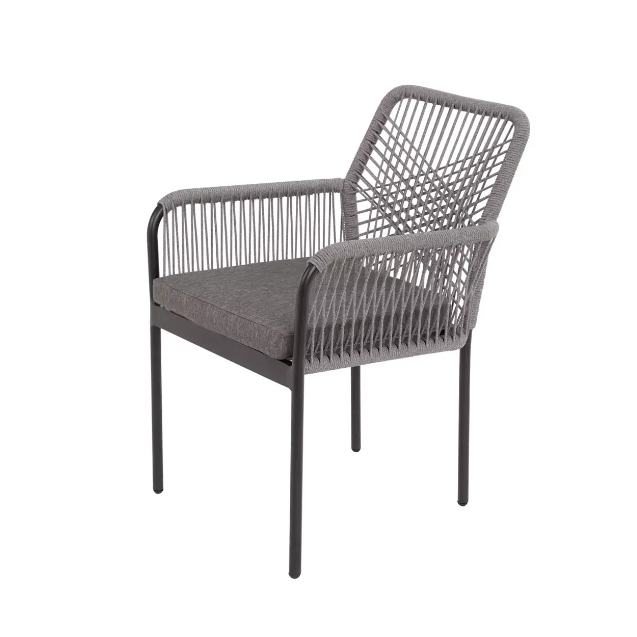 grau; Esszimmerstuhl mit Seilgeflecht; Gestell: Alu-Rohr, anthrazit; Seilgeflecht, grau RT-158-5; mit Sitzkissen 5 cm, grau GC015;