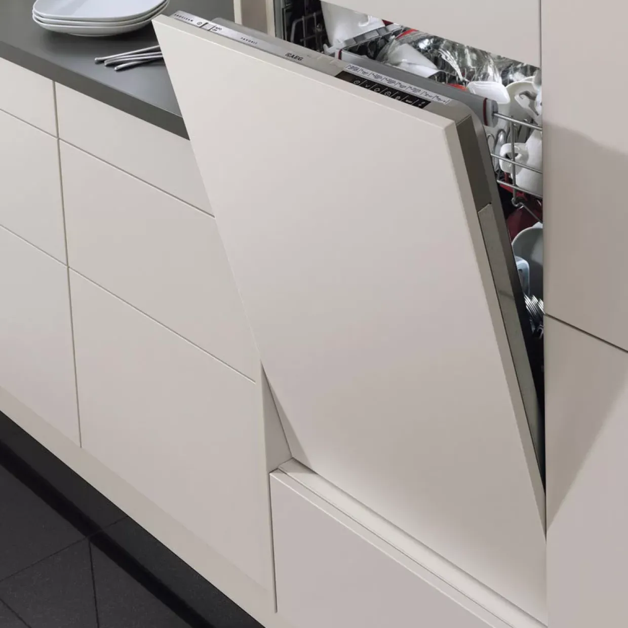 LED-Display und QuickSelect Slider ermöglichen eine intuitive Bedienung des modernen Geschirrspülers von AEG. In stilvollem Silber gehalten, fügt sich das Gerät nahtlos in jede moderne Küche ein. Die Kombination aus robustem Metall und hochwertigem Kunststoff sorgt für Langlebigkeit und Zuverlässigkeit. Besonders hervorzuheben ist der ProClean™ Satelliten-Sprüharm, der eine gründliche Reinigung gewährleistet.