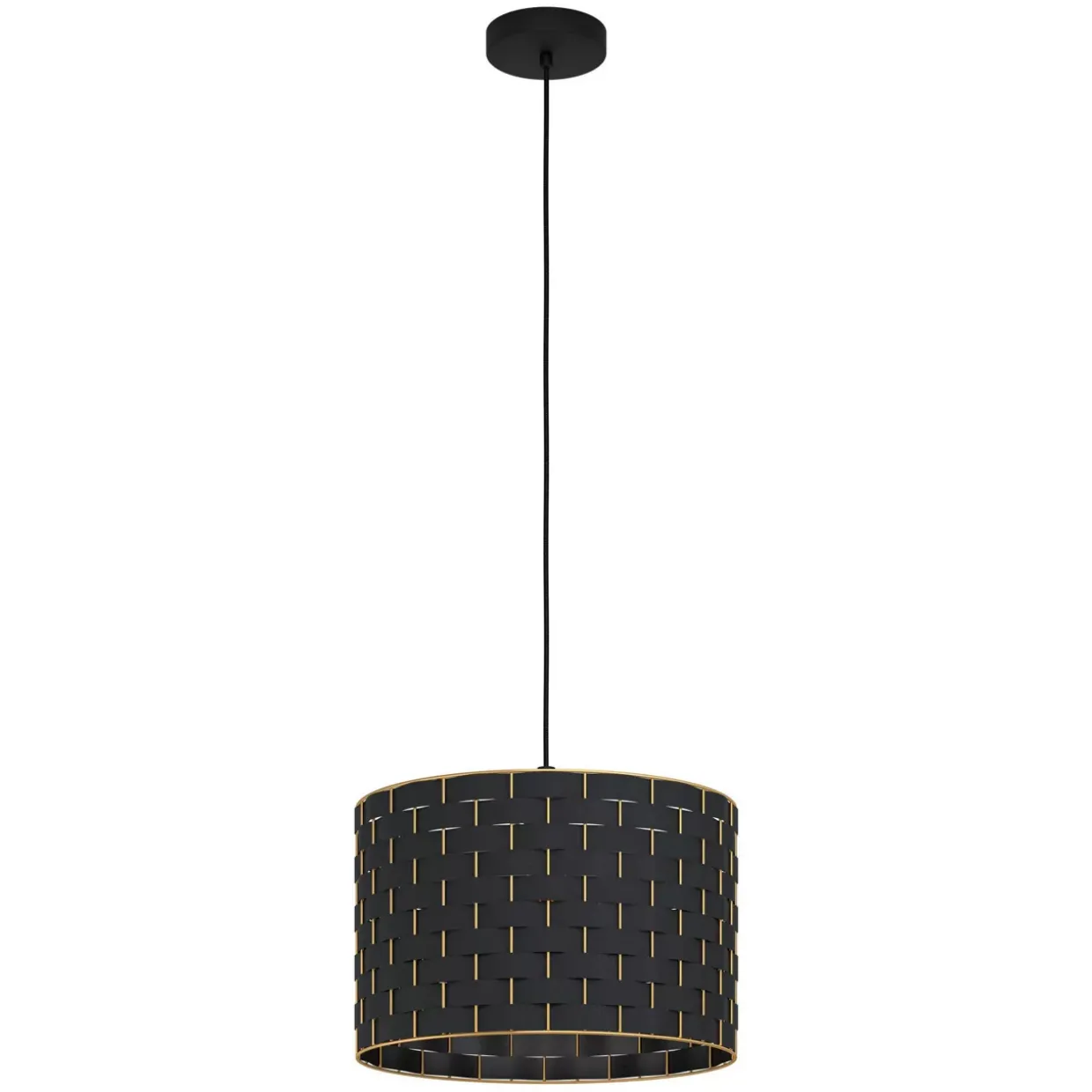 Hängeleuchte; Stahl, schwarz / Textil, schwarz, messing