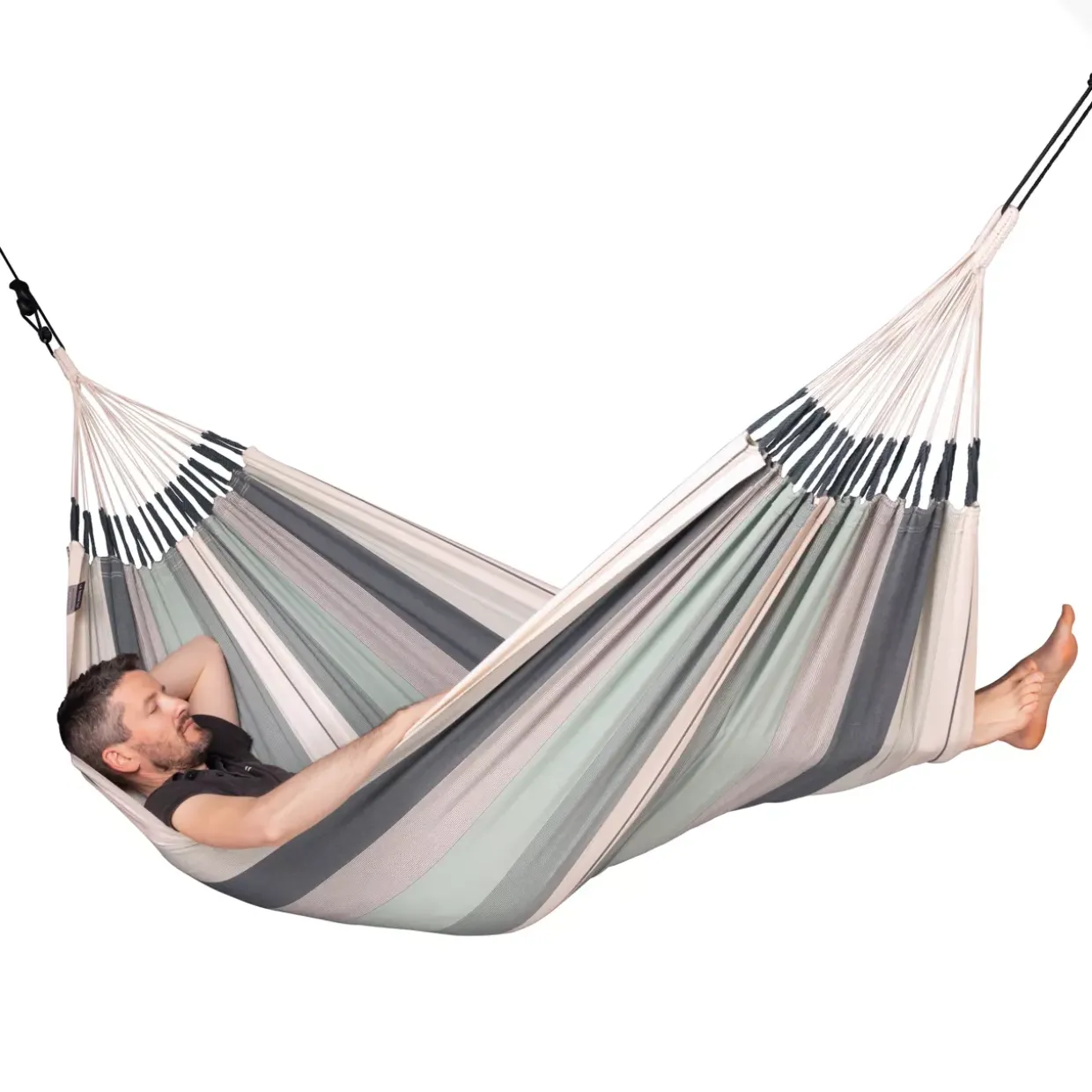 Mit einem Gewicht von nur 1,2 Kilogramm ist die Hängematte leicht genug, um problemlos transportiert und an verschiedenen Orten eingesetzt zu werden. Ob im Garten, auf dem Balkon oder im Innenbereich – die Flexibilität ist ein wesentliches Merkmal, das die Hängematte auszeichnet. Die sorgfältige Verarbeitung und das robuste Material garantieren eine lange Lebensdauer, sodass Sie viele entspannte Stunden darin verbringen können.