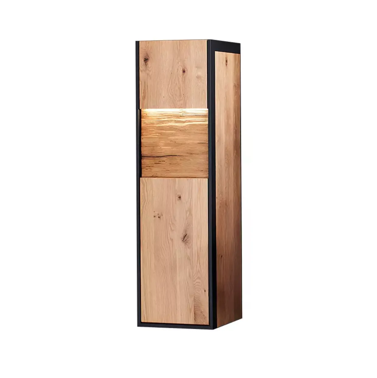 Wildeiche massiv und Eisenglimmer vereinen sich in einem modernen Design, das den Steel Hängeschrank zu einem stilvollen Highlight in jedem Raum macht. Das Zusammenspiel aus Holz und Metall verleiht diesem Möbelstück nicht nur Stabilität, sondern auch eine zeitlose Eleganz.