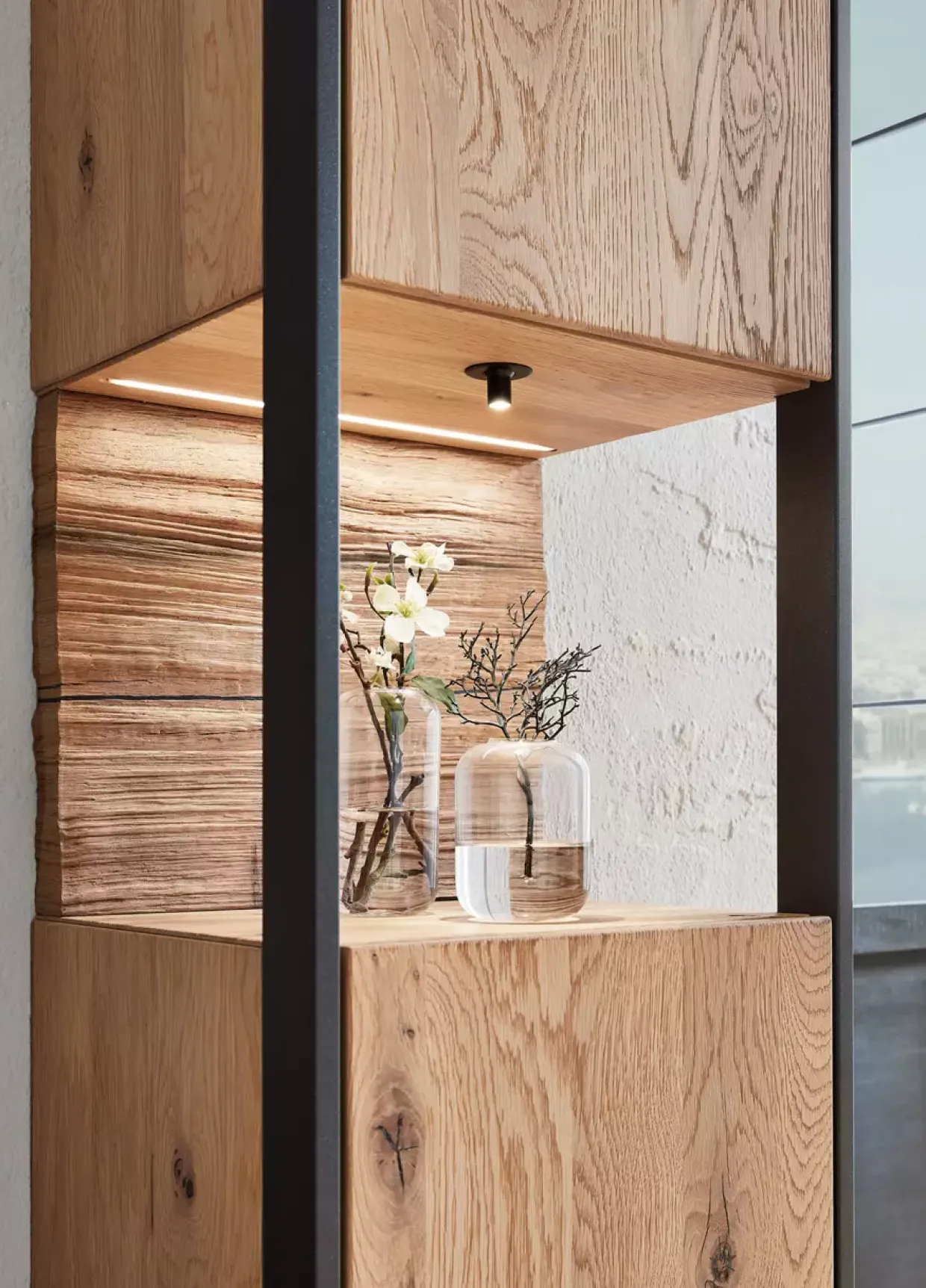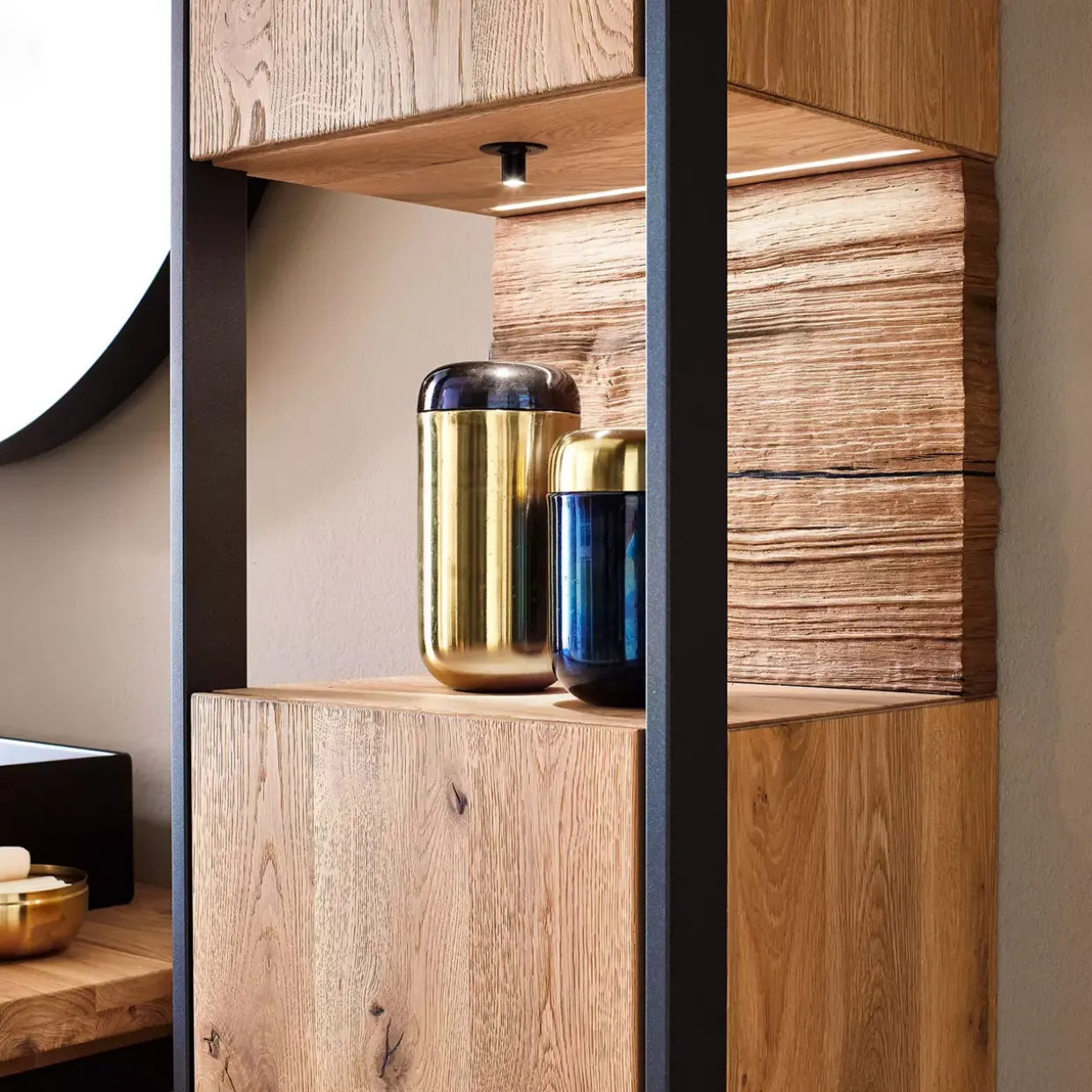 Der Steel Hängeschrank vereint auf gekonnte Weise Design und Zweckmäßigkeit und wird so zu einem unverzichtbaren Element moderner Wohnräume. Er bietet nicht nur Aufbewahrungsmöglichkeiten, sondern auch eine Plattform für stilvolle Präsentation. Durch die Verwendung von robustem Holzmaterial ist er zudem langlebig und zeitlos. In jedem Detail zeigt sich die Sorgfalt und das handwerkliche Können, das in dieses Produkt eingeflossen ist.