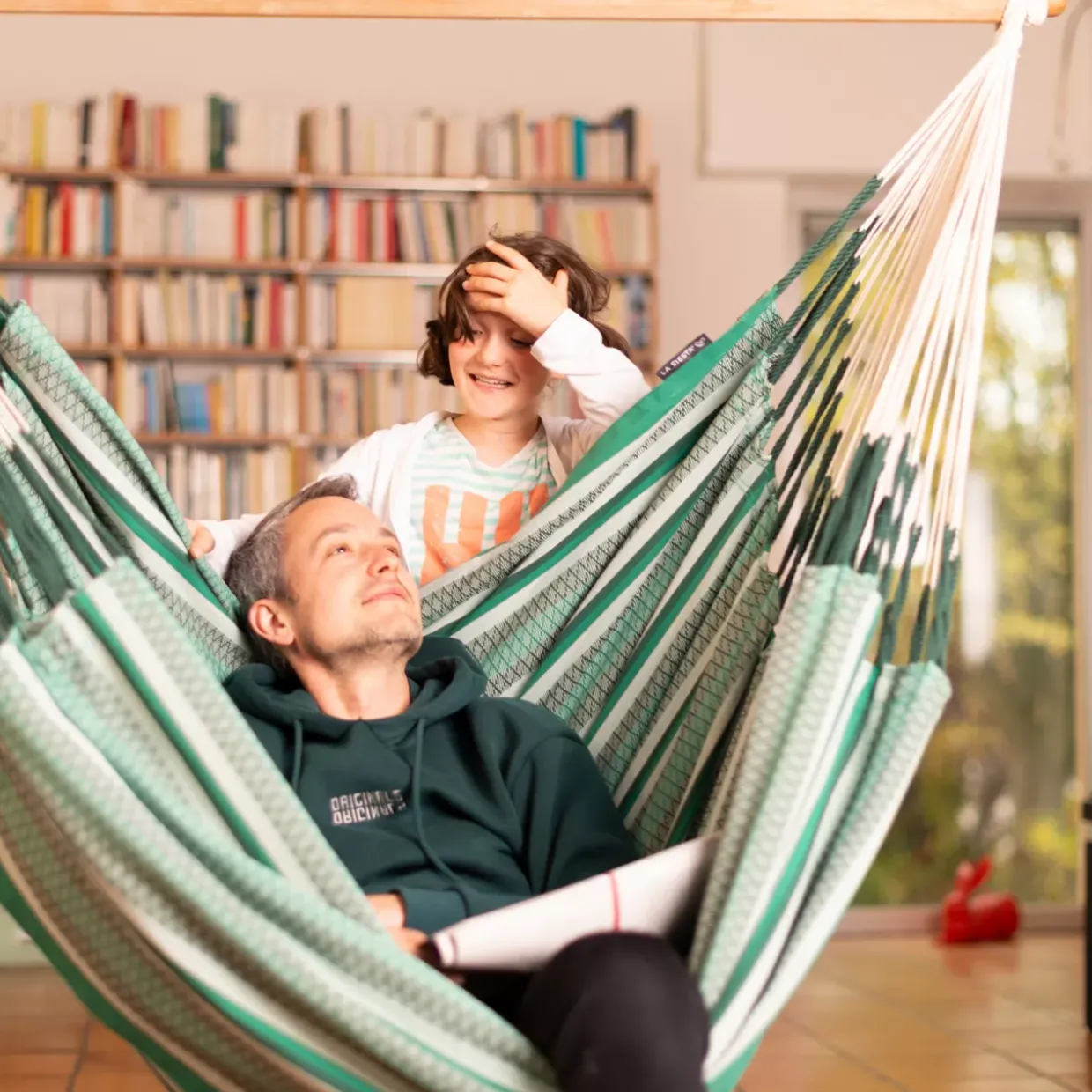 Der Habana Hängesessel in der erfrischenden Farbe Agave ist ein moderner Rückzugsort für Momente der Entspannung. Aus hochwertiger Baumwolle gefertigt, bietet das Textilmaterial eine angenehme Haptik und Langlebigkeit, die Ihnen viele Jahre Freude bereiten wird.