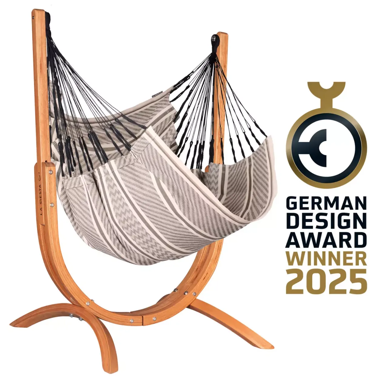 Der Stil des Hängesesselgestells verkörpert den Charme des Boho-Designs. Diese ästhetische Kombination aus Funktionalität und Schönheit passt perfekt in Ihren Garten oder auf die Terrasse. Die organische Formgebung ergänzt das Ambiente Ihres Außenbereichs und schafft eine einladende Atmosphäre.