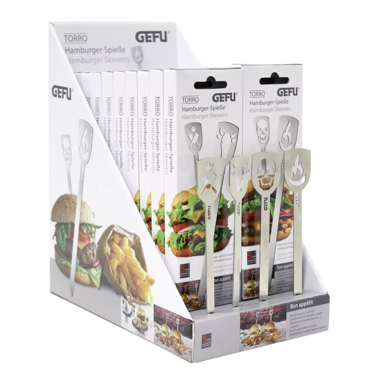 Hamburger-Spieße TORRO, 2 Stück (Totenkopf/Flamme)
