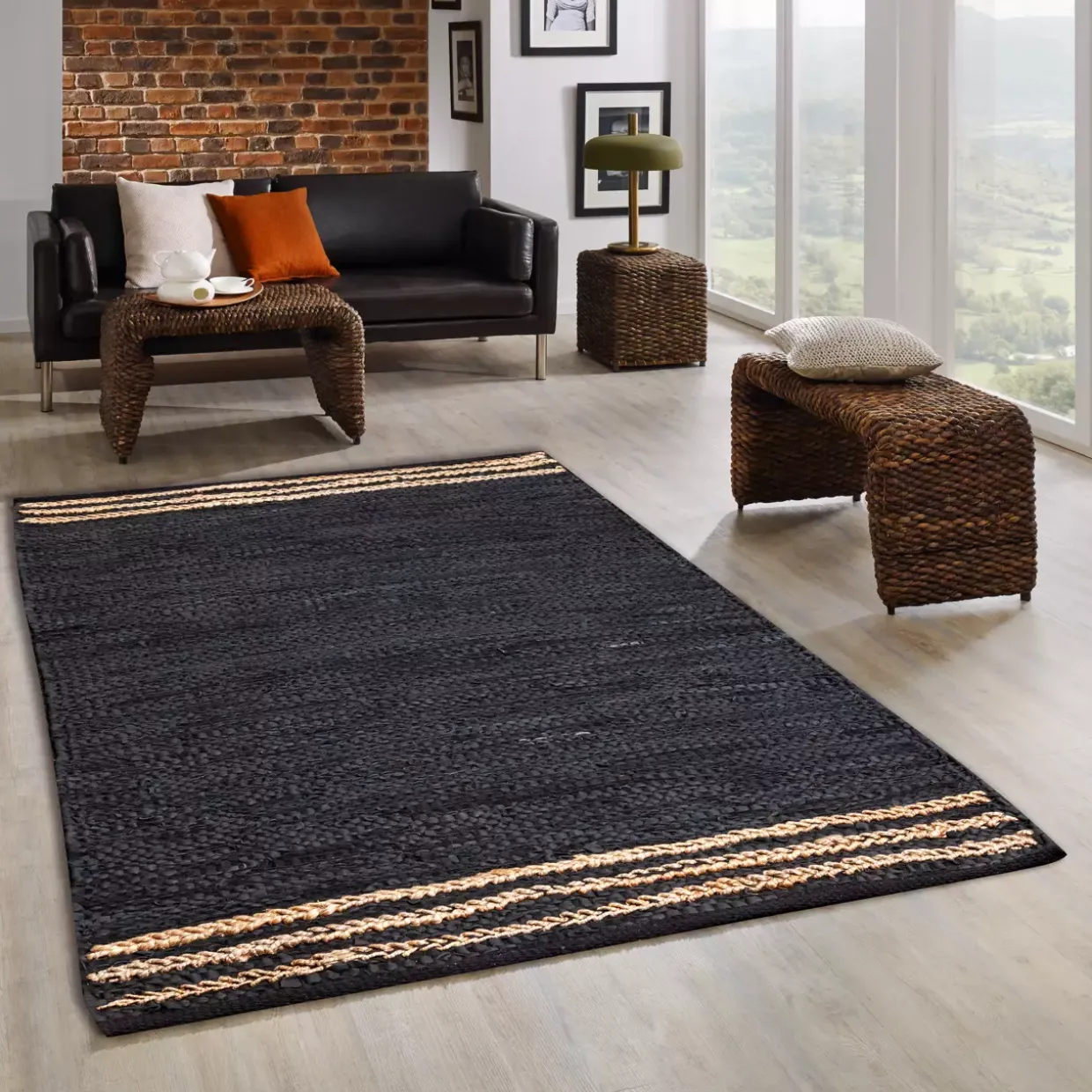 Handgewebt und von modernem Stil geprägt, präsentiert sich dieser Handwebteppich in elegantem Schwarz. Das Zusammenspiel von Leder und Textil verleiht ihm nicht nur eine robuste Struktur, sondern auch eine ansprechende Optik. Die Flachgewebeart in Verbindung mit der Textilart Jute sorgt für eine angenehme Haptik und einen natürlichen Charme.