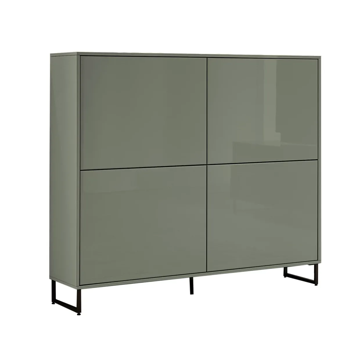 Eleganz in modernem Stil: Das Highboard Aviva-Wohnen vereint zeitgemäßes Design mit funktionaler Raffinesse. Lackierte Oberflächen in Piniengrün und mattes Schwarz schaffen eine harmonische Farbkombination, die jedem Raum eine besondere Note verleiht. Die Kufenfußform aus Metall sorgt nicht nur für Stabilität, sondern verleiht dem Möbelstück auch einen schwebenden Charakter.