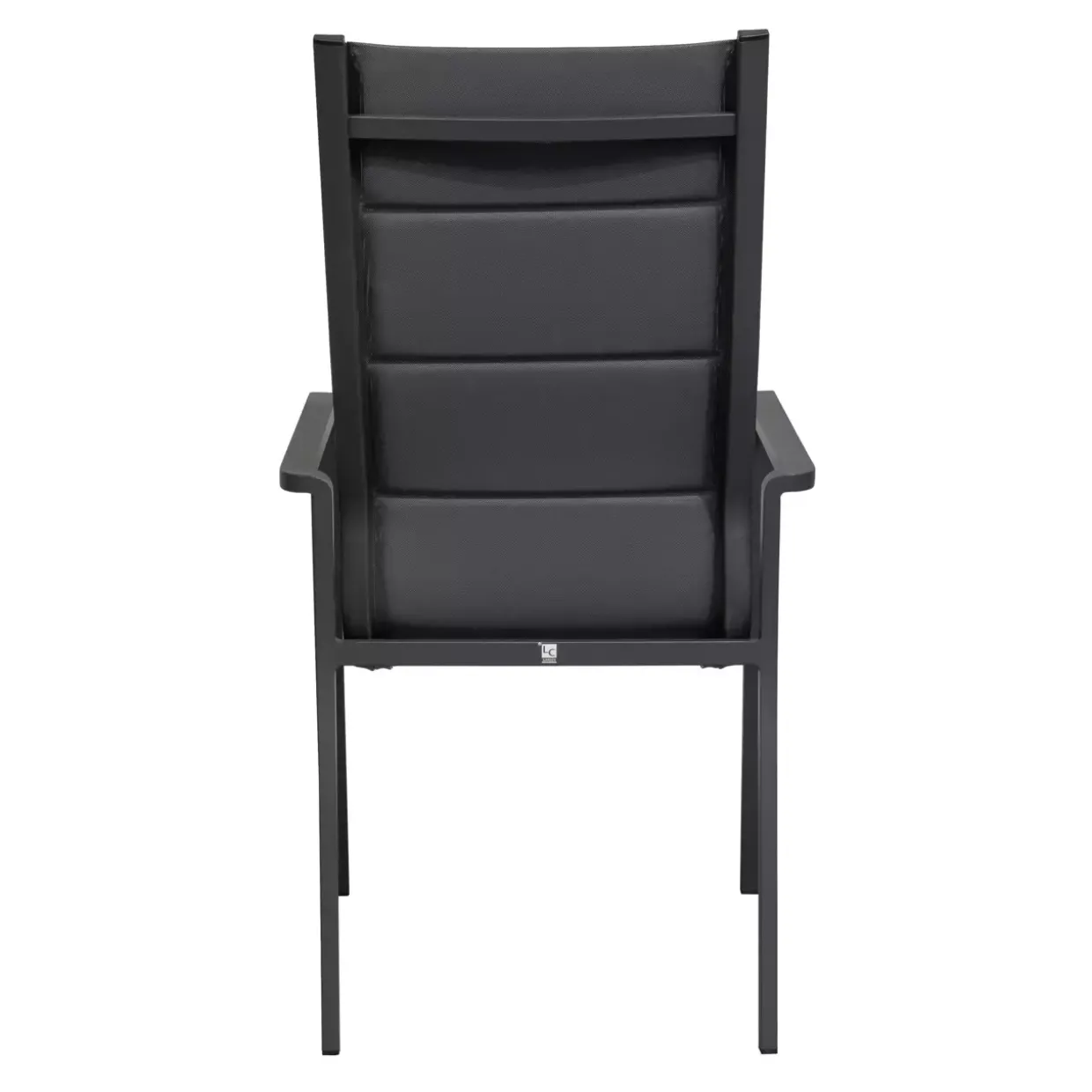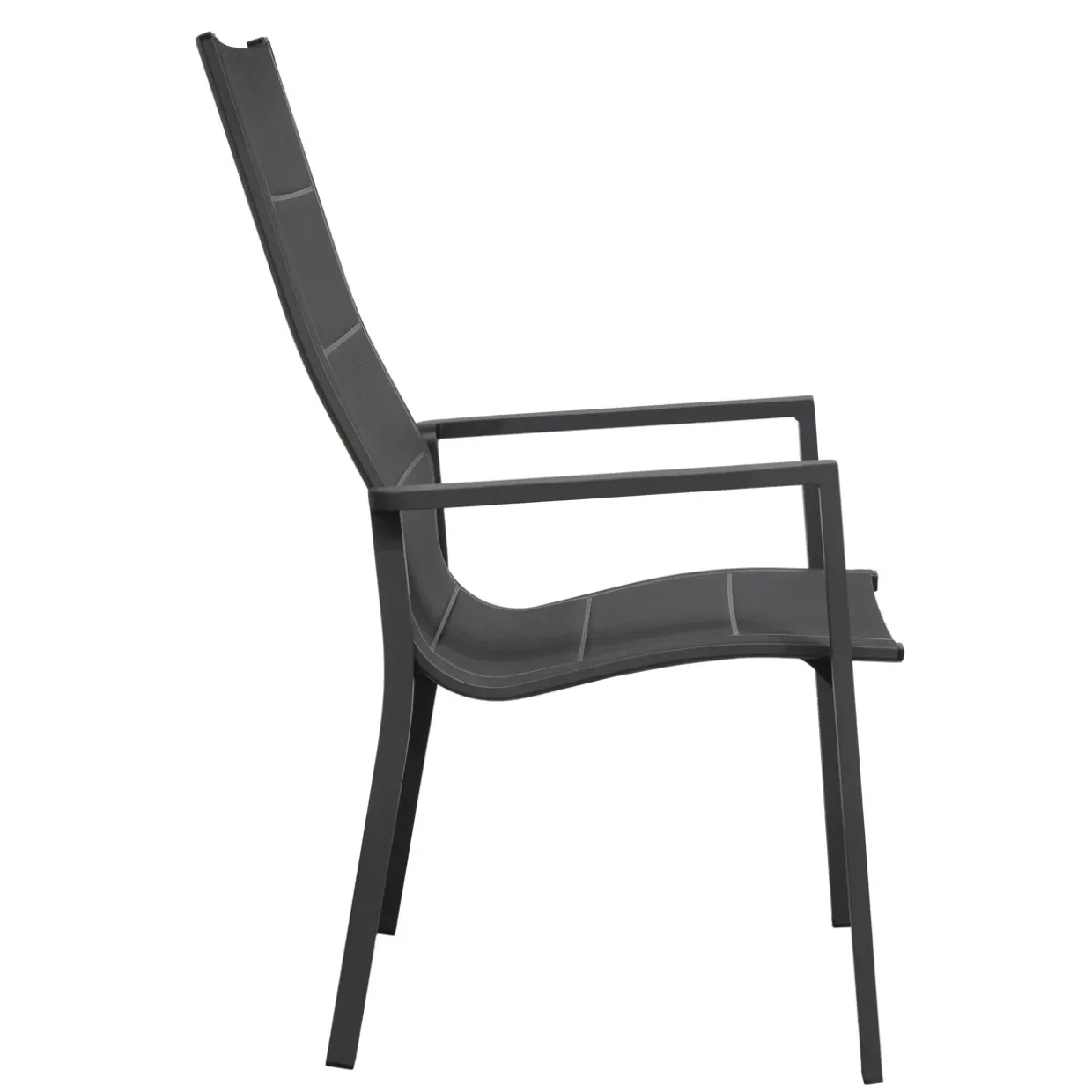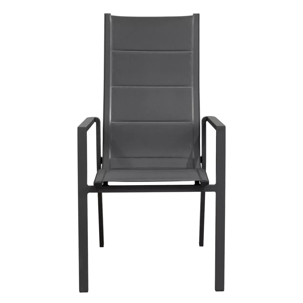 Sitz- und Rückenlehne aus Textilene, gepolstert; Farbe: anthrazit; Gestell: Aluminium, anthrazit; stapelbar