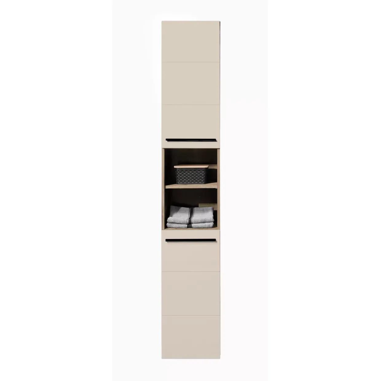 Insgesamt stellt dieser Hochschrank eine harmonische Verbindung aus Design und Funktion dar, die sowohl in Wohnräumen als auch in Büros eine gute Figur macht. Das Zusammenspiel aus Materialien und Farben schafft eine einladende Atmosphäre, die Ihr Zuhause bereichern wird.