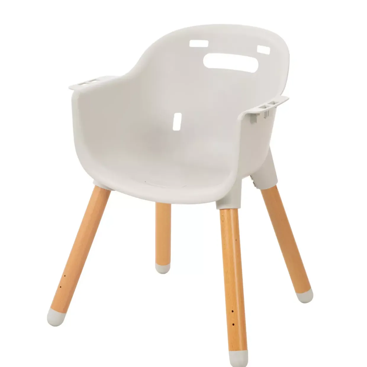 Der 2in1 Hochstuhl und Kinderstuhl „SytleUp Wood“ im modernen Design wird inklusive grauer Sitzpolsterung aus Kunstleder und Essbrett geliefert. Das Essbrett ist abnehmbar und somit leicht zu reinigen. Der praktische 2in1 Stuhl kann aufgrund der variablen Stuhlbeinhöhe mehrere Jahre genutzt werden. Im Babyalter dient er als Hochstuhl zum Teilhaben am Familienleben. Später kann der Stuhl als Kinderstuhl zum Spielen am Kindertisch genutzt werden. Zusätzliche Sicherheit beim Essen und Füttern bietet das 5-Punkt-Gurtsystem sowie der Beintrenner. Die Sicherheitselemente können bei Nutzung als Kinderstuhl abgenommen werden. Das Fußbrett des Stuhls ist 2-fach höhenverstellbar. Die Stuhlbeine sowie das Fußbrett sind aus Buche Massivholz und verleihen den beiden Stuhlvarianten die nötigte Stabilität. Mit seinem formschönen Design ist der Hochstuhl ein echter Blickfänger.