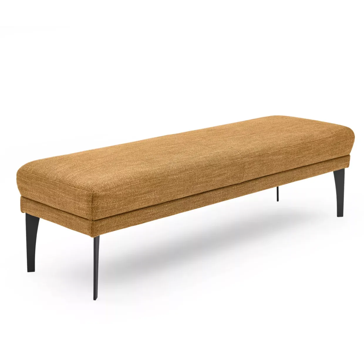 Ein besonderes Highlight stellen die schwarzen Strukturfüße dar, die dem Möbelstück Stabilität und einen markanten Kontrast zur leuchtenden Curry-Farbe bieten. Diese Kombination aus Farbe und Design unterstreicht den modernen Charakter des Piatto-Dining und macht es zu einem Blickfang in jedem Essbereich.