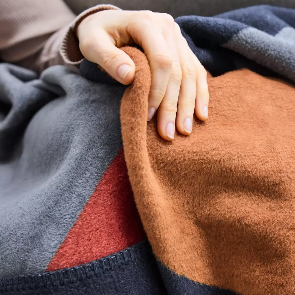 Pflegeleicht und alltagstauglich, lässt sie sich schonend bei 30°C im Wollwaschprogramm oder Feinwäsche reinigen. Auch die Trocknung im Trockner bei niedriger Temperatur ist möglich, was die Pflege unkompliziert gestaltet. Auf das Bügeln und Bleichen sollte verzichtet werden, um die Qualität des Stoffes zu erhalten. Für eine sanfte Reinigung eignet sich zudem Perchlorethylen bestens. Diese Decke verbindet Funktionalität mit modernem Design und ist ein stilvoller Begleiter für ein gemütliches Zuhause.