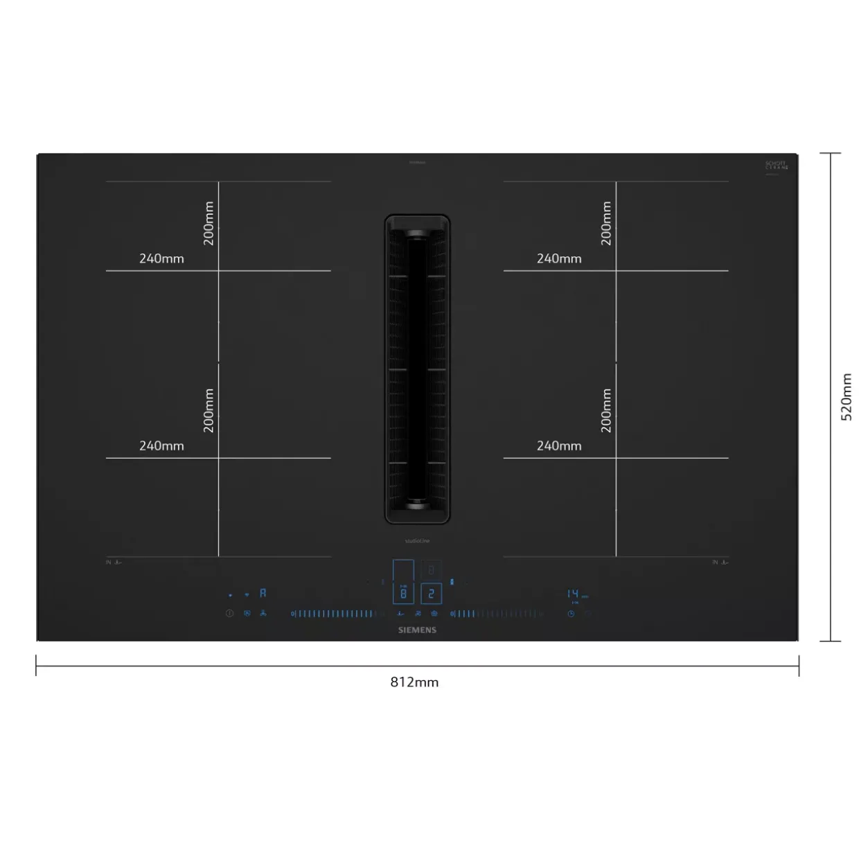 VarioInduktion eröffnet Ihnen neue Möglichkeiten: Nutzen Sie Kochgeschirr in beliebiger Form und Größe innerhalb der 40 cm langen Zone. Diese fortschrittliche Technologie wird durch ein modernes Design in mattschwarzer Glaskeramik ergänzt, das sich nahtlos in jede Küche einfügt. Mit dem blauen Dual lightSlider lassen sich alle Funktionen elegant per Touch- und Slide-Bedienung steuern. Der climateControl Sensor sorgt für eine angenehme Küchenumgebung, indem er Dunst und Gerüche erkennt und die Lüfterleistung automatisch anpasst. So wird das Kochen zum Vergnügen. Die 17 Leistungsstufen plus zwei Intensivstufen bieten Ihnen die Flexibilität, die Sie benötigen, um jedes Gericht perfekt zuzubereiten.Sicherheit steht an erster Stelle: Kindersicherung, Abschaltung nach Inaktivitätsdauer und viele weitere Funktionen bieten ein beruhigendes Gefühl. Die einfache Reinigung des integrierten Dunstabzugs reduziert den Reinigungsaufwand auf ein Minimum. Mit den Home Connect Features wie Remote Diagnostics und Remote Monitoring behalten Sie stets die Kontrolle, auch aus der Ferne. Praktische Funktionen wie quickStart, reStart, Ausschalter und verschiedene Timer runden das Angebot ab. Die Warmhaltefunktion und powerBoost sorgen für zusätzliche Bequemlichkeit und Leistung. Entdecken Sie den Komfort und die Vielseitigkeit, die ein modernes Induktionskochfeld bietet.