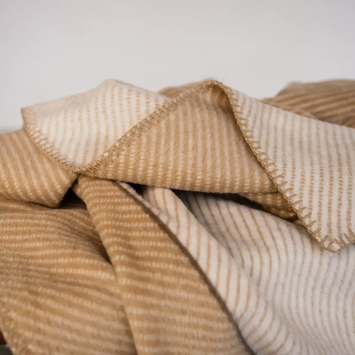 Die rechteckige Form der Wohn- und Heimdecke Austin bringt eine moderne Eleganz in Ihr Zuhause. Mit ihrem zeitlosen Stil fügt sich die Decke nahtlos in jeden Raum ein und verleiht ihm eine beruhigende Atmosphäre. Die harmonische Farbgebung in Natur und Wollweiß betont die subtile Schönheit dieser Decke, während das Querstreifen-Muster eine interessante visuelle Struktur bietet.