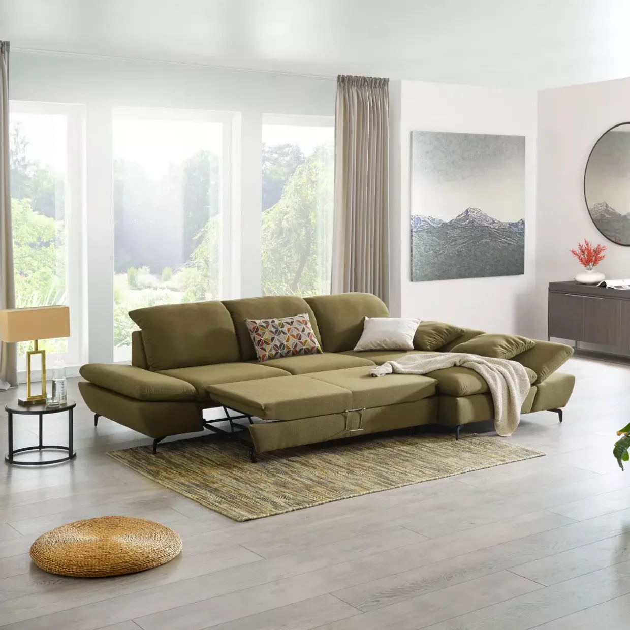Ein weiteres Highlight ist die Funktion als Querschläfer, die eine unkomplizierte Möglichkeit für Übernachtungsgäste schafft. Die flexiblen Seitenteile ermöglichen es Ihnen, die Garnitur nach Ihren Bedürfnissen zu gestalten, was sie besonders vielseitig und anpassungsfähig macht.