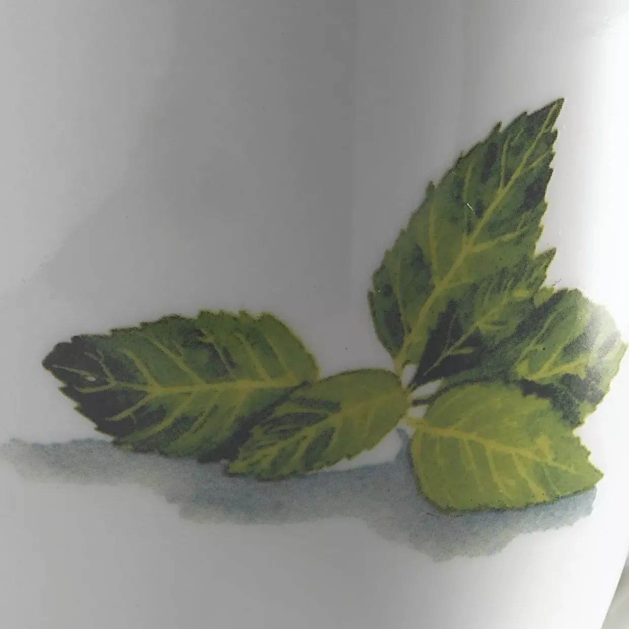 Besonderes Augenmerk gilt dem grünen Minze-Dekor, das auf subtile Weise Akzente setzt. Es verbindet Natürlichkeit mit stilvollem Design und macht den Becher zu einem idealen Begleiter für gemütliche Stunden. Ob beim Frühstück oder einer entspannten Kaffeepause, dieser Kaffeebecher erfüllt alle Erwartungen an Qualität und Design.