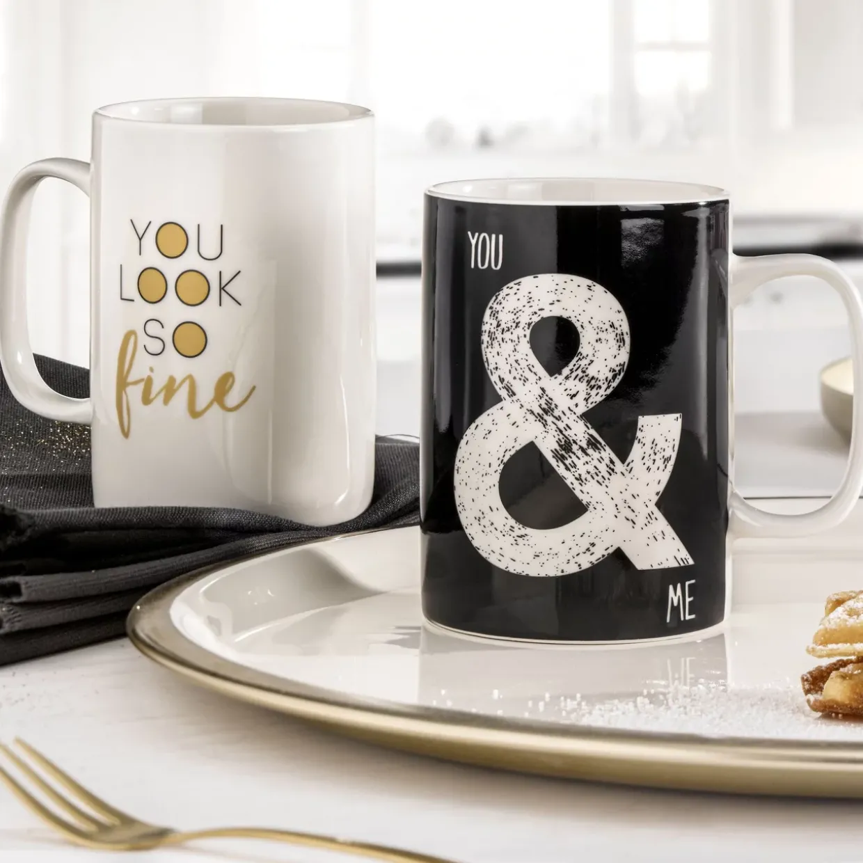 You & Me ;Schwarz-weiß und modern – dieser elegante Kaffeebecher bringt Stil auf Ihren Tisch. Gefertigt aus hochwertigem New Bone China, vereint er Robustheit mit einem feinen, edlen Erscheinungsbild. Die schlichte und doch ausdrucksstarke Kombination aus Schwarz und Weiß passt sich nahezu jedem Interieur an und setzt gleichzeitig einen markanten Akzent.Ein besonderes Highlight ist das liebevoll gestaltete Motiv You & Me, das sowohl Romantik als auch Zusammengehörigkeit symbolisiert. Diese subtile Botschaft macht den Becher zu einem perfekten Geschenk für besondere Anlässe oder einfach, um sich selbst eine Freude zu bereiten.Praktisch und alltagstauglich, ist der Kaffeebecher sowohl mikrowellen- als auch spülmaschinengeeignet. So können Sie Ihr Getränk ohne Aufwand aufwärmen und den Becher nach Gebrauch unkompliziert reinigen. Mit einem Fassungsvermögen von 0,36 Litern bietet er ausreichend Platz für Ihre liebste Kaffee- oder Teesorte.Pflegeleicht und funktional, ist dieser Kaffeebecher eine Bereicherung für jeden Haushalt. Die Kombination aus stilvollem Design und hoher Funktionalität macht ihn zu einem unverzichtbaren Begleiter für den täglichen Genussmoment. Lassen Sie sich von der Qualität und dem Design inspirieren und gönnen Sie sich eine kleine Auszeit vom Alltag mit jedem Schluck.