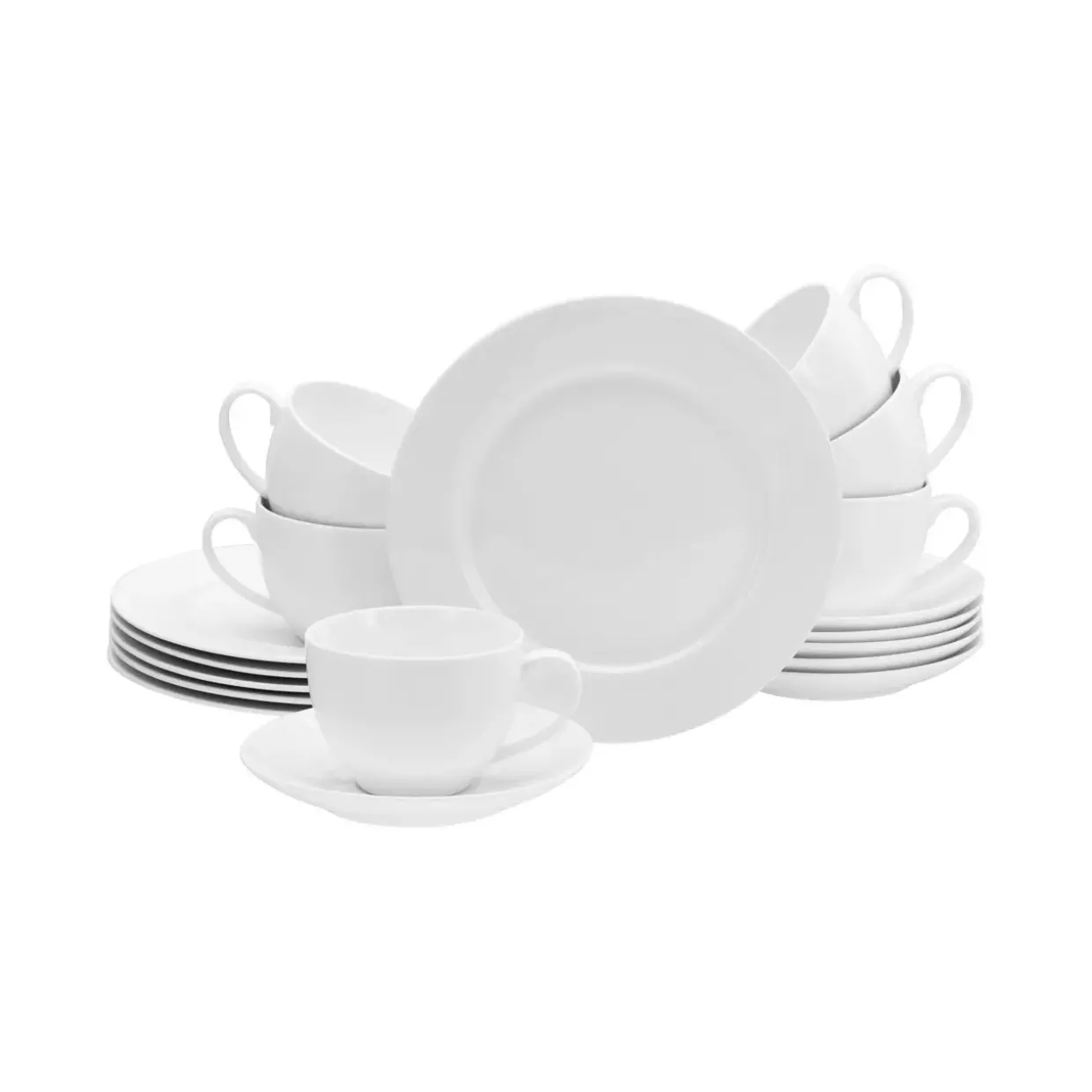 Eleganz trifft auf Funktionalität in diesem modernen Kaffeeservice. In einem sanften Cremeweiß gehalten, strahlt es zeitlose Schönheit aus, die sowohl für besondere Anlässe als auch für den täglichen Gebrauch bestens geeignet ist. Das Set besteht aus 18 Teilen, gefertigt aus hochwertigem Porzellan, das für seine Langlebigkeit und edle Erscheinung bekannt ist.Dank der glasierten, glänzenden Oberfläche wird jede Kaffeepause zu einem besonderen Moment. Praktische Eigenschaften wie Lebensmittelechtheit, Mikrowellen- und Spülmaschinentauglichkeit machen es zu einem zuverlässigen Begleiter im Alltag. Die Zertifikate garantieren, dass das Service BPA-, PTFE- und PFOA-frei ist, sodass Sie sich keine Sorgen um gesundheitsschädliche Stoffe machen müssen.Ein weiteres Highlight ist die Stapelbarkeit des Sets, die für eine platzsparende Aufbewahrung sorgt. Das schlichte Uni-Muster fügt sich harmonisch in jede Tischdekoration ein und lässt sich problemlos mit anderen Geschirrteilen kombinieren. Die runden Formen des Services verleihen ihm eine sanfte, einladende Ausstrahlung, die Ihre Gäste begeistern wird.Dieses Kaffeeservice ist weit mehr als nur ein Alltagsgegenstand; es ist ein Ausdruck von Stil und Qualität, der in keiner Küche fehlen sollte.