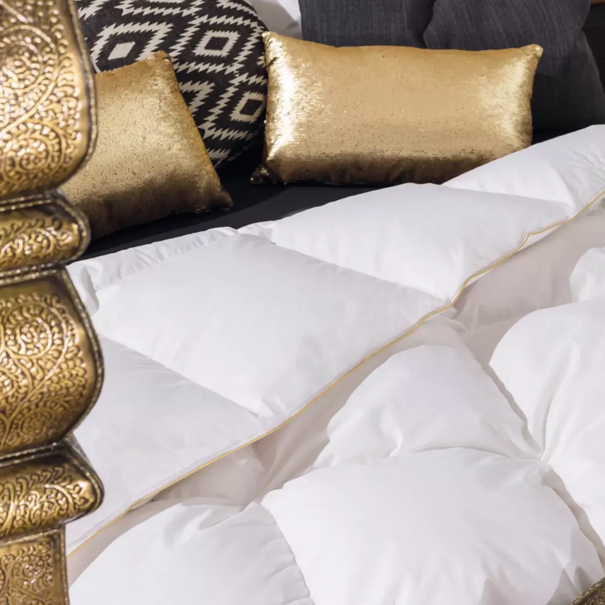 Die Füllmenge von 700 Gramm macht diese Daunendecke zu einem idealen Begleiter für das ganze Jahr. Der moderne Stil in zeitlosem Weiß fügt sich harmonisch in jedes Schlafzimmer ein und verleiht ihm eine elegante Note. Das Modell Golden Line besticht durch seine dezente, unauffällige Optik, die sich für jeden Geschmack eignet.