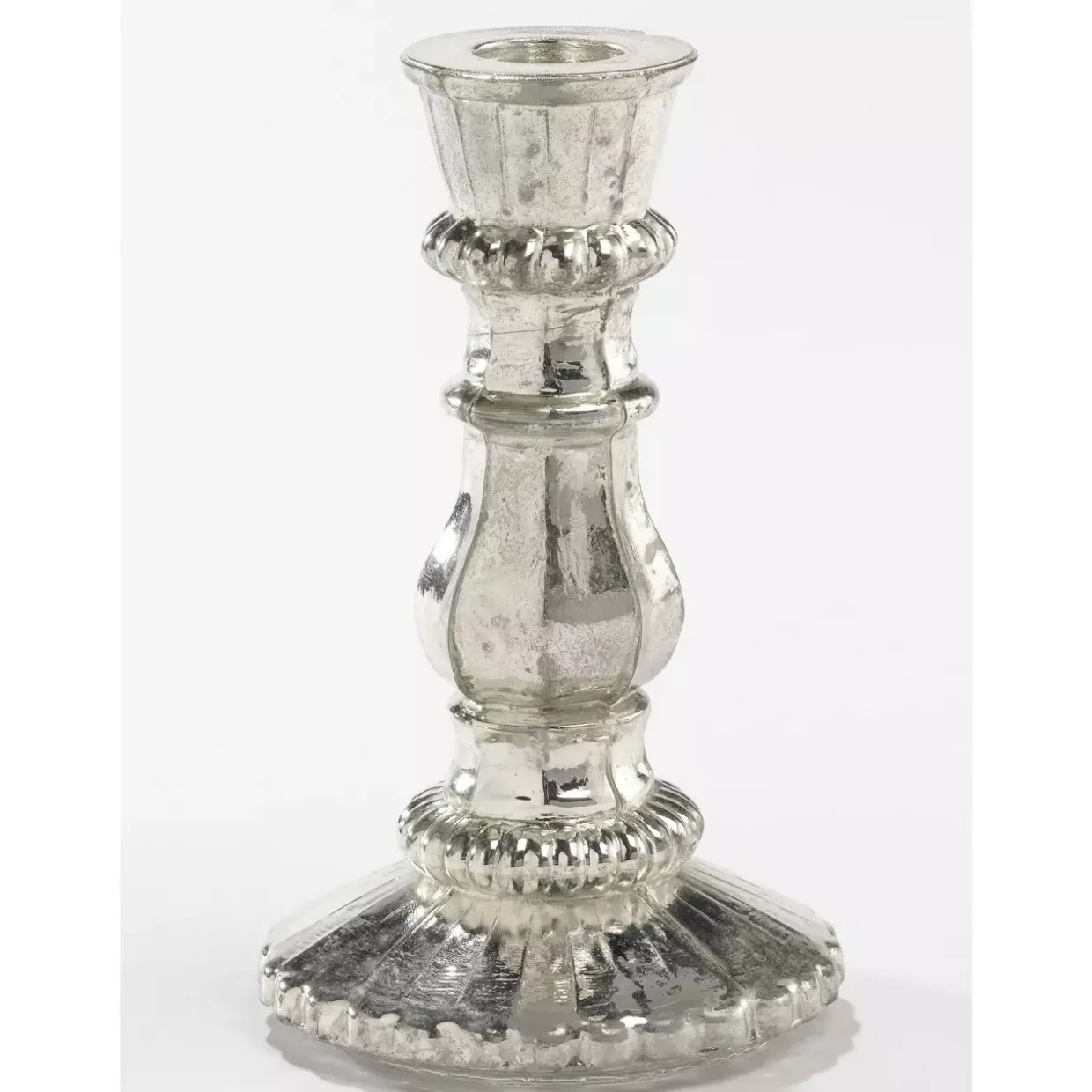 Antik silberne Eleganz verleiht diesem modernen Kerzenständer eine zeitlose Anziehungskraft. Perfekt für stilvolle Arrangements, kombiniert er die klassische Anmutung mit einem Hauch zeitgenössischer Raffinesse. Das verwendete Glasmaterial sorgt für eine klare und brillante Optik, die das Kerzenlicht auf ganz besondere Weise reflektiert und jeden Raum in ein warmes, einladendes Licht taucht.