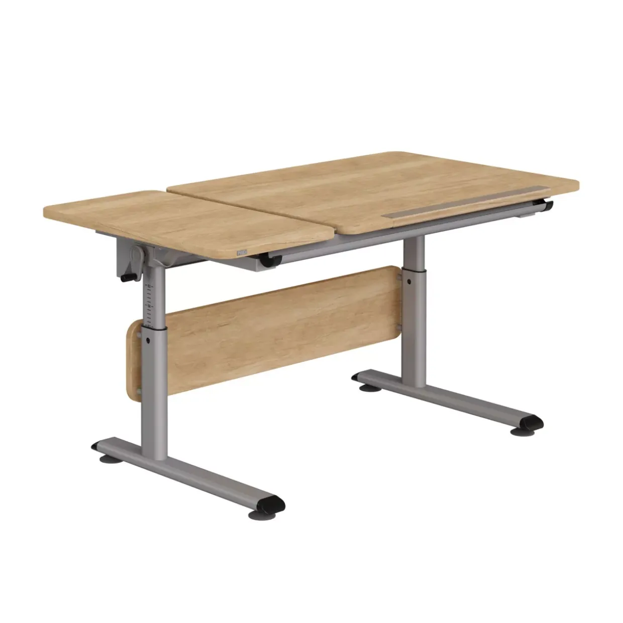 Vielfältige Anpassungsmöglichkeiten bietet die Schrägstellung der Hauptplatte, die sich bis zu einem Winkel von 19 Grad neigen lässt. Diese Funktion wird durch ein System aus drei Raster-Scheren unterstützt und sorgt dafür, dass Sie bequem arbeiten können, egal ob Sie schreiben, zeichnen oder lesen.