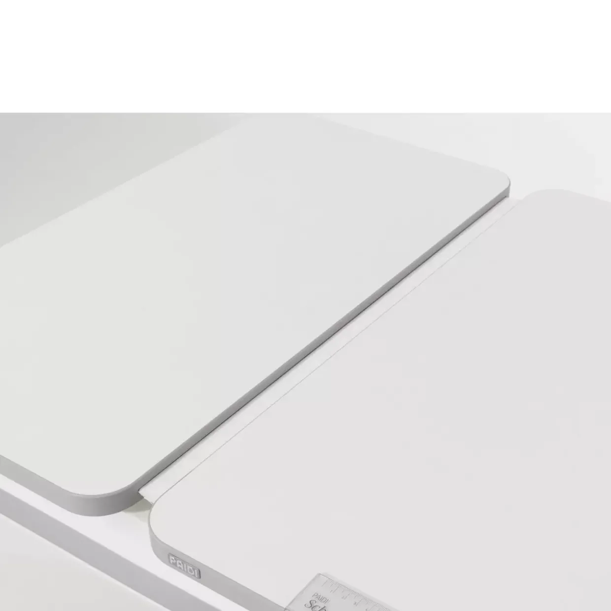 Flexibilität wird großgeschrieben, denn die Hauptplatte lässt sich bis zu 19° neigen, unterstützt durch 3 Raster-Scheren. Dies ermöglicht eine ergonomische Arbeitsweise, besonders hilfreich bei kreativen Tätigkeiten oder beim Zeichnen. Praktisch gestaltet, kommt der Schreibtisch mit einem integrierten 60 cm Lineal, das präzises Arbeiten erleichtert, sowie einer Ablagemulde für Schreibutensilien. Ein weiterer nützlicher Zusatz ist der Taschenhaken, der für Ordnung und Übersichtlichkeit sorgt.