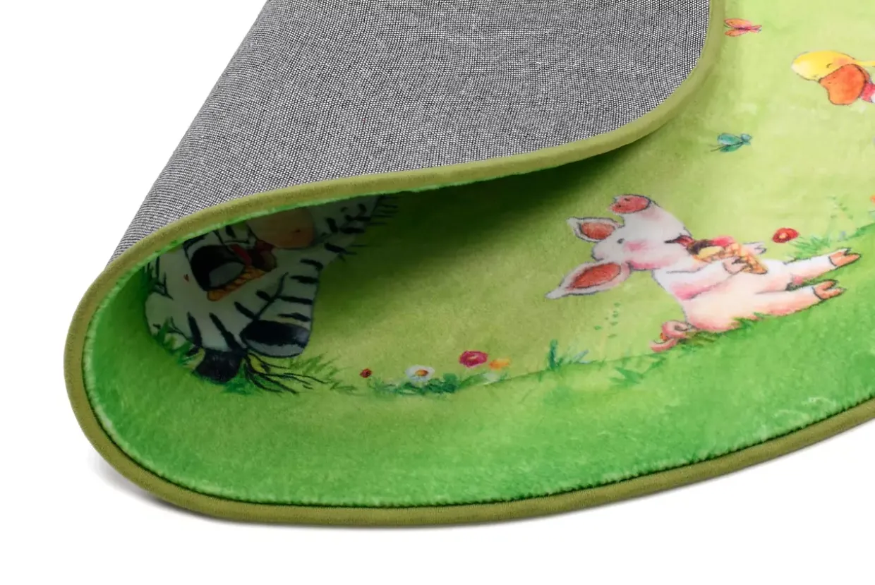 Ein rundes Design strahlt Harmonie und Geborgenheit aus. Der konventionelle Stil dieses Kinder- und Spielteppichs fügt sich nahtlos in jede Umgebung ein und schafft eine angenehme Atmosphäre im Kinderzimmer. In einem beruhigenden Grün gehalten, wirkt er ganzjährig erfrischend und lädt zum Spielen und Verweilen ein.