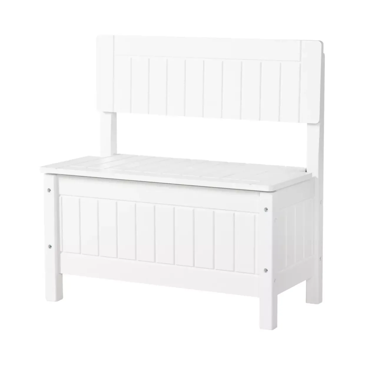 Der praktische Stauraum unter der Sitzfläche bietet Platz für Spielzeug, Bücher oder Kuscheltiere und hilft dabei, Ordnung zu halten. Kinder finden hier einen bequemen Sitzplatz zum Spielen, Lesen oder Malen, während Eltern die Möglichkeit haben, schnell aufzuräumen. Das schlichte Design ermöglicht es, die Bank auch in anderen Räumen zu verwenden, sei es im Wohnzimmer, Flur oder der Küche.