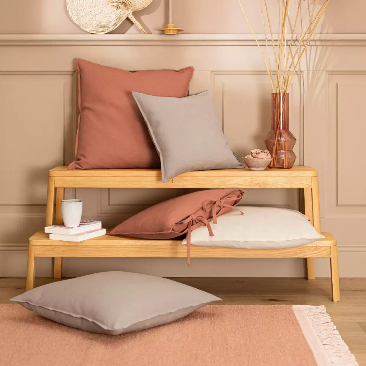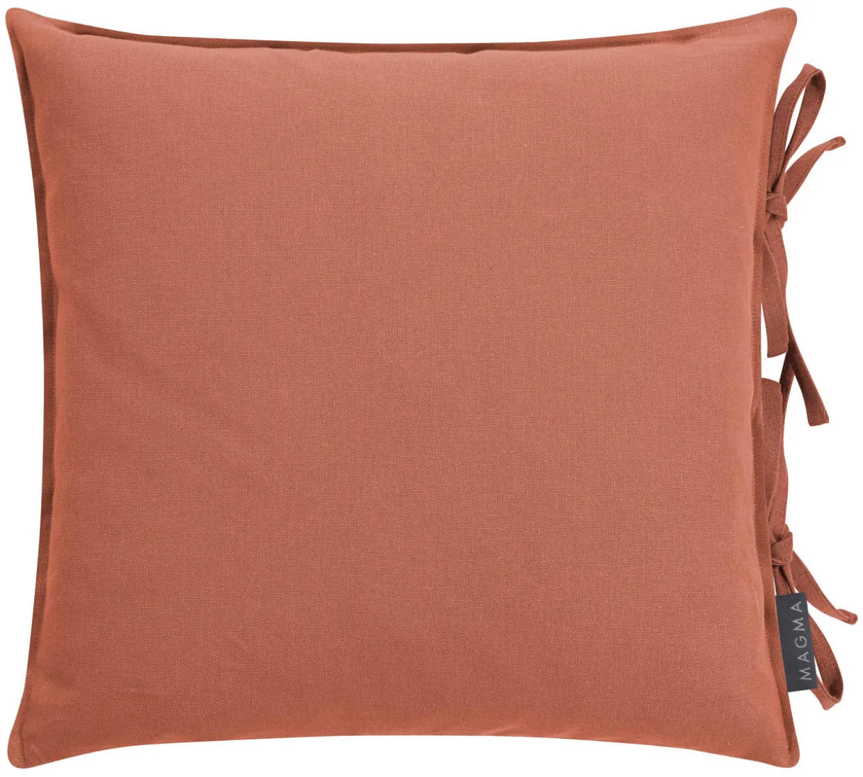 bügelleicht Farbton: terracotta Größe: 40x40cm Form: quadratisch Stil: Modern Naturfaser: Flachs bzw. Leinen 100% Material: Textil Verschlussart: Hotelverschluss Zertifikate: Ökotex – Standard 100 Muster und Motiv: Uni bestehend aus: 1 Kissenhülle Bänder Set: nein Textilart: Naturfaser Saison: Ganzjährig Maschinenwäsche bis 30°C schonend Highlights