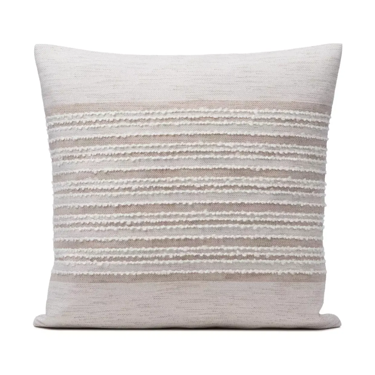 Die quadratische Form dieser Kissenhülle bringt moderne Eleganz in Ihr Zuhause. Mit einem stilvollen, mittig quergestreiften Muster fügt sie sich harmonisch in jedes Wohnambiente ein. Die dezente, steinfarbene Gestaltung passt perfekt zur sommerlichen Saison und verleiht jedem Raum eine frische und zeitlose Note.