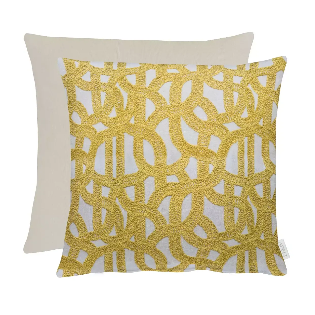 Ein leuchtendes Gelb erfrischt jeden Raum und bringt fröhliche Akzente in Ihr Zuhause. Die moderne Kissenhülle, die sich durch ihre quadratische Form und das raffinierte, sonstige Motiv auszeichnet, fügt sich harmonisch in verschiedenste Einrichtungsstile ein. Besonders bemerkenswert ist die bestickte Oberfläche, die jedem Raum einen Hauch von Eleganz verleiht.