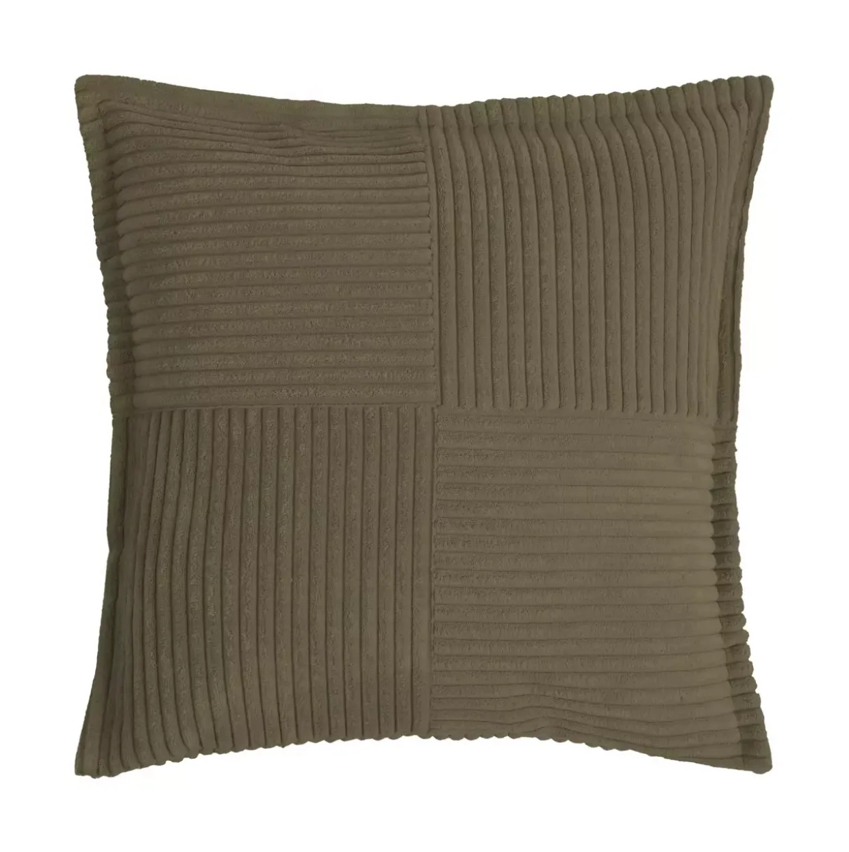 Die olivfarbene Kissenhülle im modernen Stil verleiht jedem Raum eine zeitlose Eleganz. Dank der Gewebeart Cord bietet sie eine angenehme Haptik und ein robustes Erscheinungsbild. Die Patchwork-Optik dieser Kissenhülle fügt sich nahtlos in eine Vielzahl von Einrichtungsstilen ein und sorgt für eine harmonische Atmosphäre.